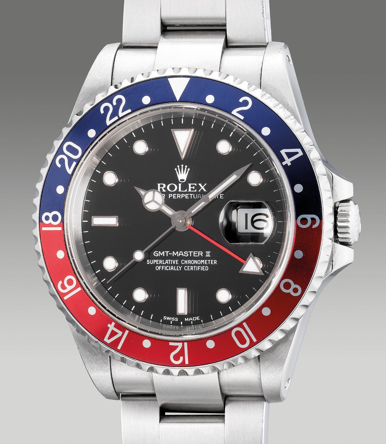 The present example Rolex GMT-Master II ref. 16710 with a P serial from circa 2001 with a “Swiss Made” dial is perhaps one of the earlier examples of the reference featuring Superluminova. Presented in an attractive overall condition and accompanied by its original guarantee and accessories, the present example with a strikingly rich red and blue Pepsi bezel is certainly one to have in any collection.