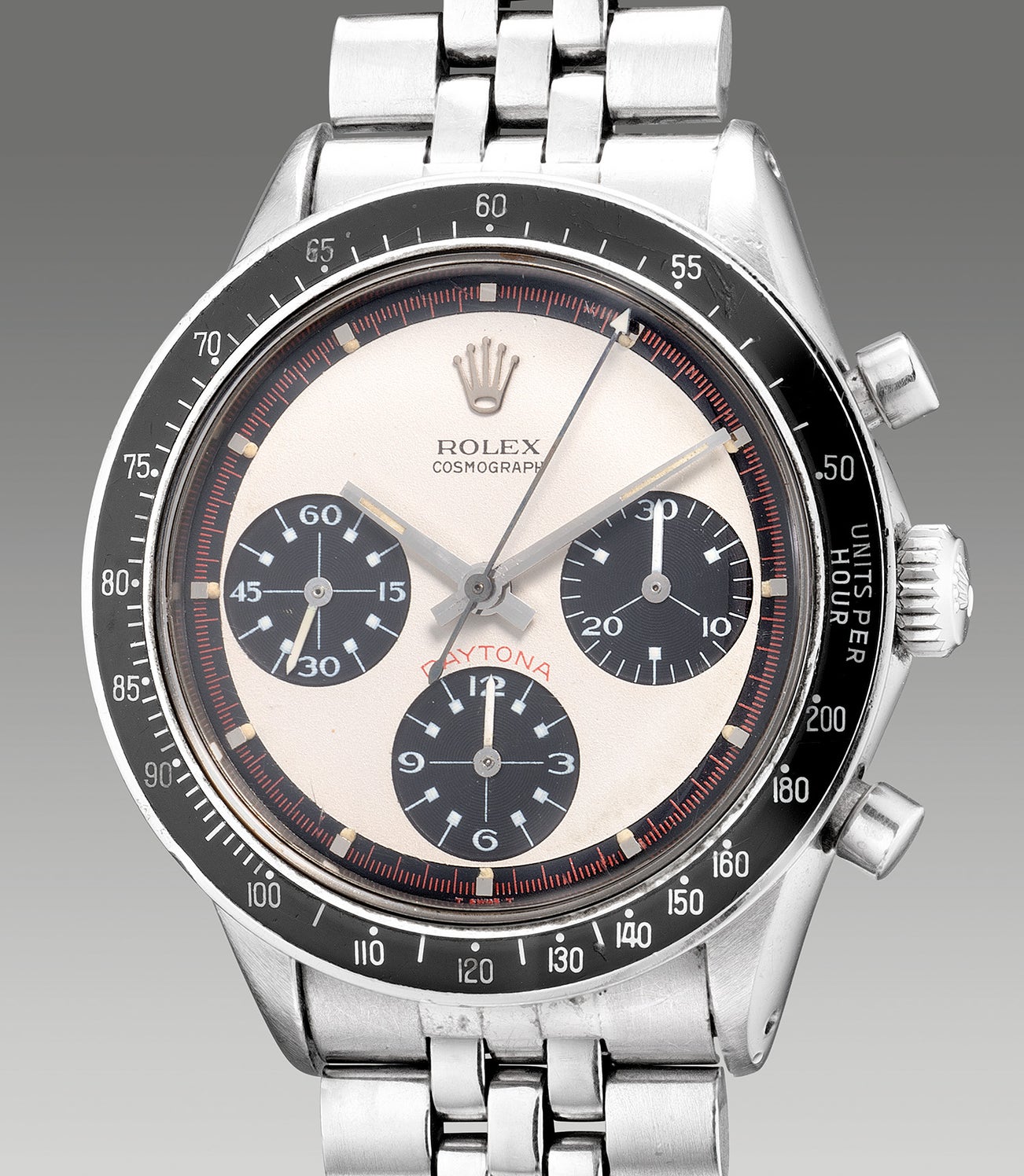 Although the entire reference alone is considerably rare, examples that feature the exotic Singer-made “Paul Newman” dials that take up a small batch from the 2,300 examples of the reference produced are extremely scarce. Fitted with a tri-coloured “Paul Newman” dial, the style is identical to Mr. Newman’s personal ref. 6239 “Paul Newman”. With a distinctive trait for exotic dials from the respective era, a keen eye may notice the slanted “T SWISS T” featured in red writing underneath the 6 o’clock position with other references featuring a flat “T SWISS T”. Moreover, the case for the reference were produced with two profiles with examples made before 1966 featuring a rounder appearance with examples later featuring a rather oval appearance.