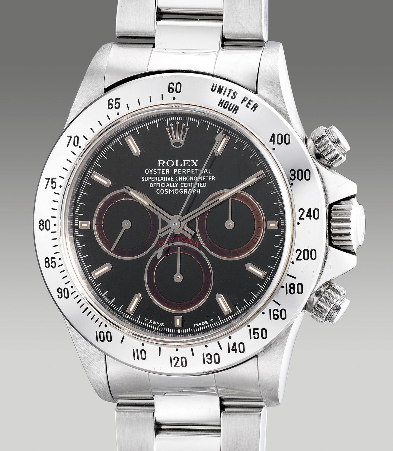 With most examples of the reference commanding a formidable value today, various series such as the present example command an even higher value than its standard counterparts. In the manufacturing process of the dial, one of the factors contributing to the unique “tropical” effect is the varnish used at the time by Rolex, Zapon. Applied on top of the silvered registers, the varnish for some examples were not applied equally. In 2005, acclaimed Italian auctioneer noticed a difference in the color of the register originally silver whilst putting together an auction and despite its natural imperfection, the watch was sold for double its estimate, hence examples bearing a S,N,T and W serial with “tropical” brown registers received the attention from collectors. However, usually witnessed with lighter shades of brown, a few examples that has surfaced in the market featured registers in much darker “espresso-like” hue earning its nickname the “Darth Vader”. Extremely rare as these imperfections are natural occurrences, most examples feature an ununiformed change in hue, making examples that are uniformed extremely desirable and scarce.
