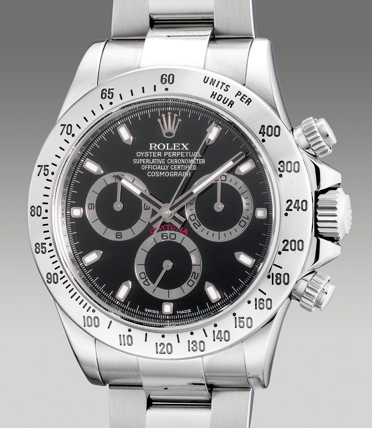 Offered in an attractive appeal and preserved in excellent overall condition, the present example fitted with a black dial is certainly a collectible specimen that represents the modern era of the Cosomograph Daytona.