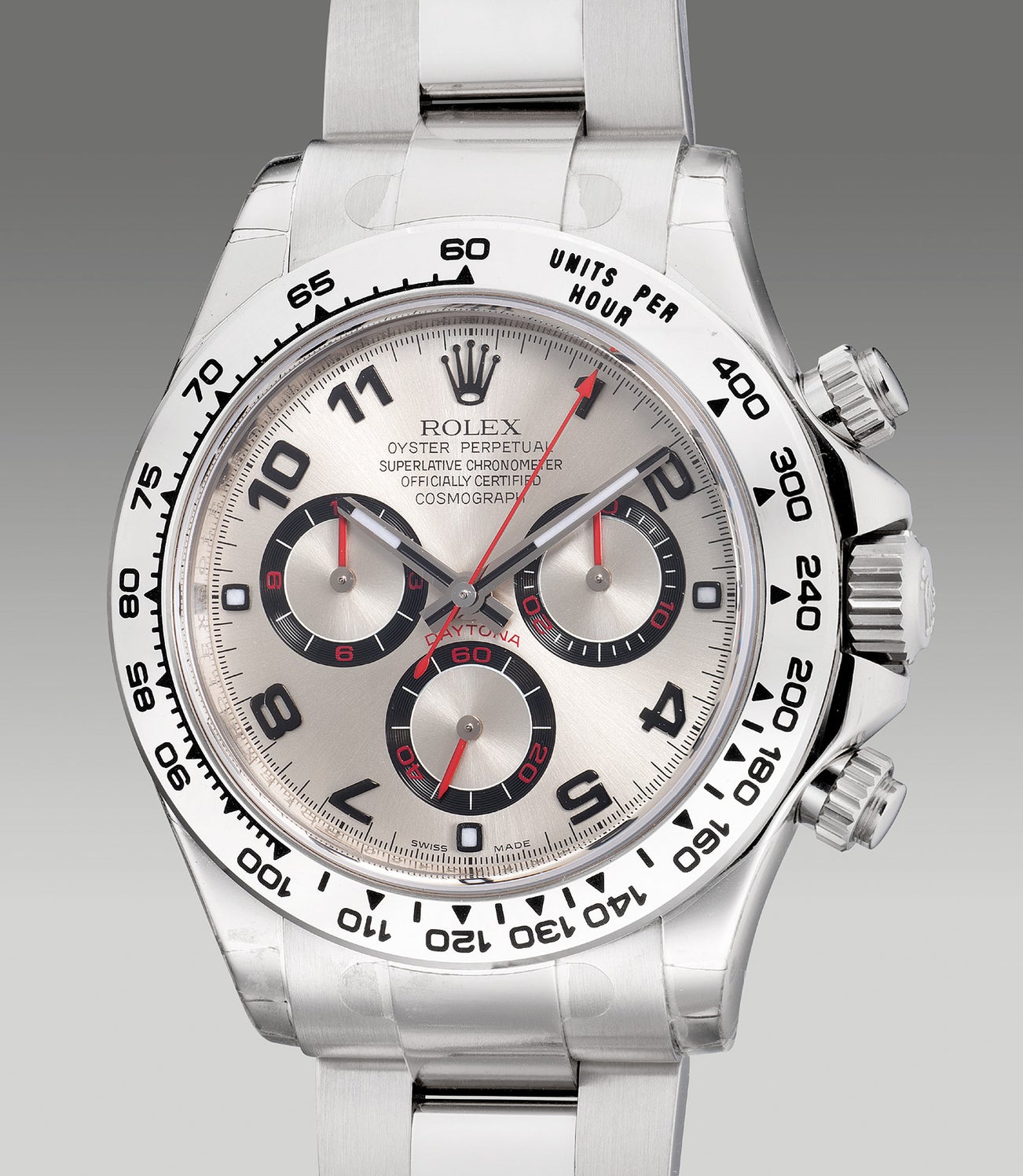 Introduced in 2000 alongside its stainless steel counterpart ref. 116520, the ref. 116509 features the upgraded and Rolex’s first ever in-house self-winding chronograph movement cal. 4130. Offered in a stunning and well-preserved condition, the present example still features partial original factory protective stickers throughout.