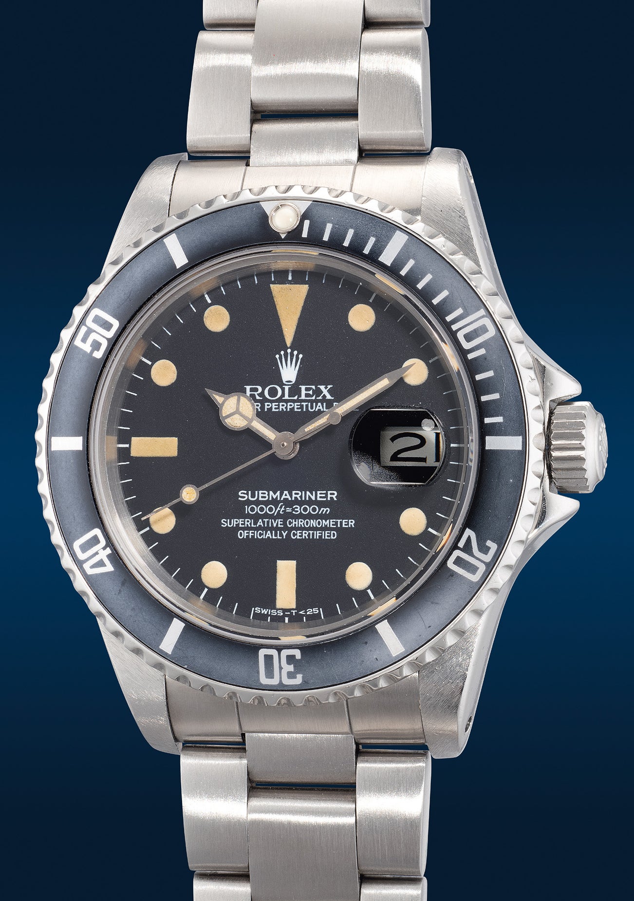 Considered a transitional model, the reference 16800 finally introduced a ratcheted, unidirectional rotating bezel at its launch. Prior to this, Submariners had bezels that could be turned in either direction where the introduction of the unidirectional bezel added an extra safety feature for professional divers. The earlier versions of the 16800, including the present watch, were equipped with vintage-looking matte dials whilst later versions featured glossy dials with white gold markers.