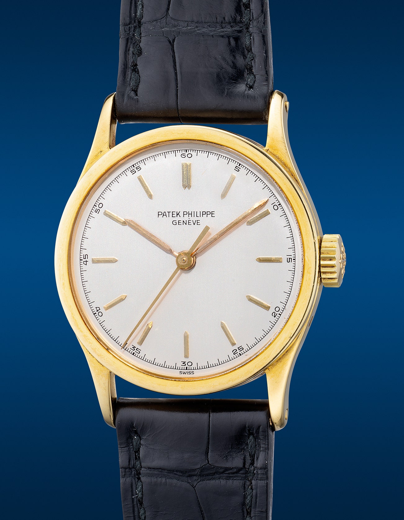 - This yellow gold Calatrava is an early example, made in the first year of reference’s production, featuring a crisp white dial and raised baton hour markers that complements the case. The white dial is further enhanced by a black minute track that perfectly frames the clean and legible time-only display.