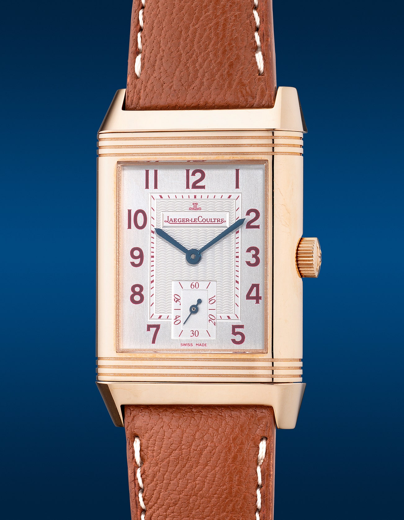 - The Reverso Grande Taille “Del Centenario Torino F.C.” was released as a limited edition of 100 pieces only to commemorate the 100th Anniversary of the Club. While 75 examples are encased in stainless steel, only 25 examples were realised in pink gold. In honour of the team’s institutional colours, the brushed silvered dial with guilloche center is adorned with burgundy hour markers. Upon reversing the dial, of the inner case bears an enamel crest of the Torino FC in the same hue.