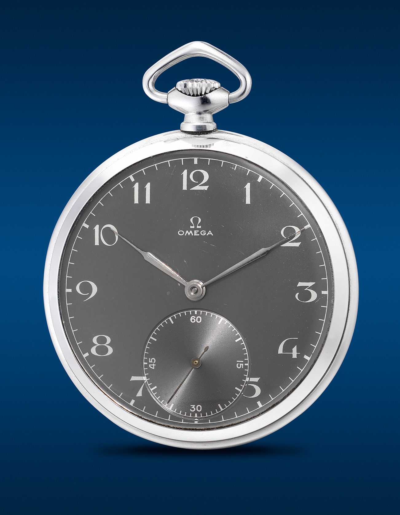 - Boasting an ashen grey dial with Art Deco Arabic numerals and syringe-shaped hands, the present Omega Lépine pocket watch bears the desirable traits of a collectable timepiece from 1944, sporting striking features distinct to that era. Encased in stainless steel, the ref. CK 374 at hand is a well-preserved specimen, further delivered with an Extract from the Archives, confirming its production date on 28th October 1944.