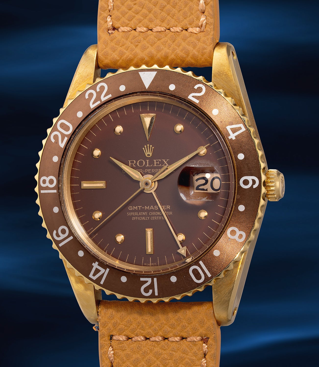 Extremely well-preserved and offered in excellent overall condition, the dark brown metallic bezel insert adds to the watch's appeal. With a tremendous presence on the wrist, this example is undoubtedly one of the most collectible GMT-Masters to appear in recent times.