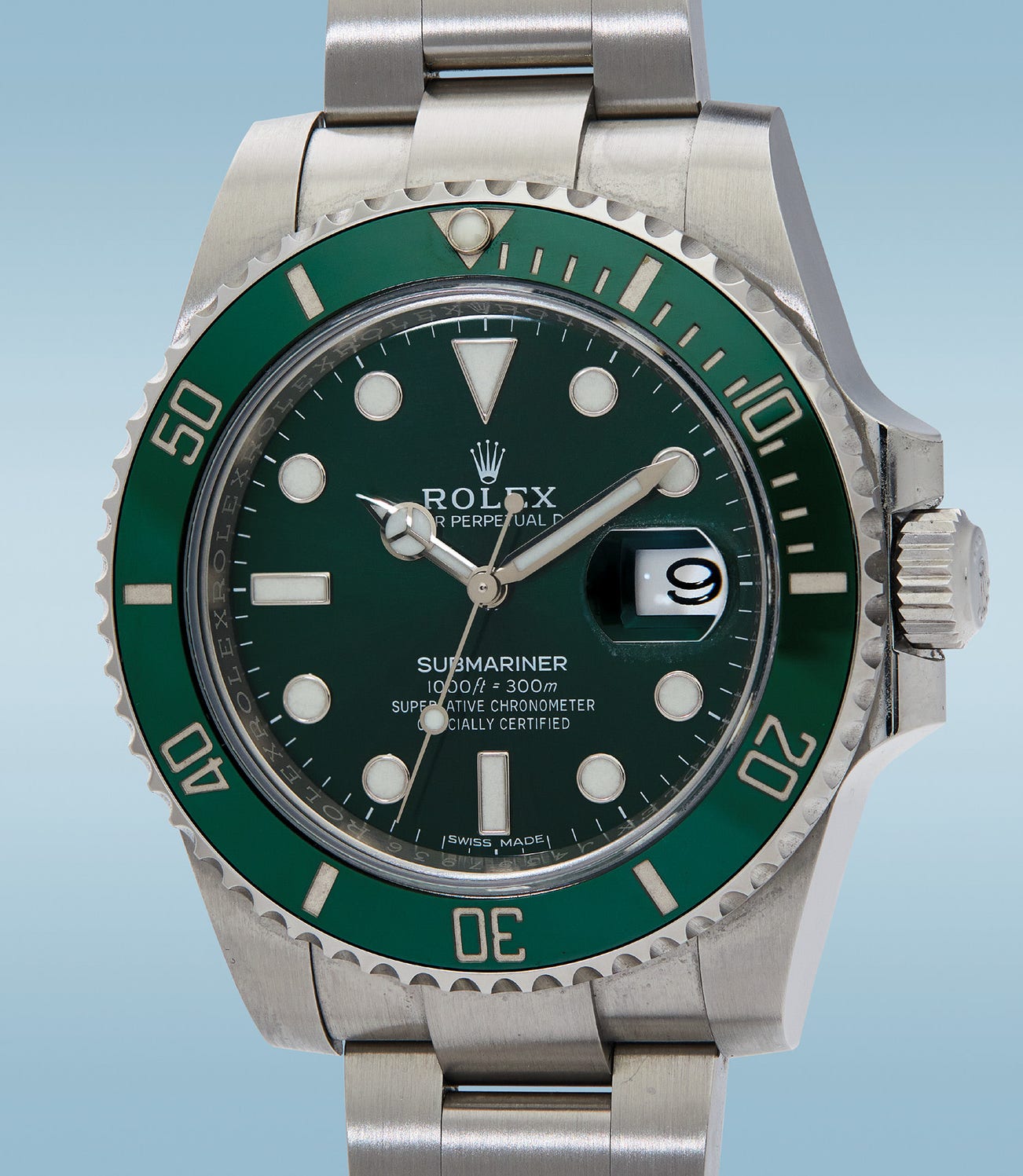 Now highly sought-after by collectors around the world, this pristine example of the Submariner Hulk from the original owner is a rare opportunity to own one of Rolex’s most coveted modern wristwatches. It is further accompanied by its original suite of accessories for the most demanding of collectors.