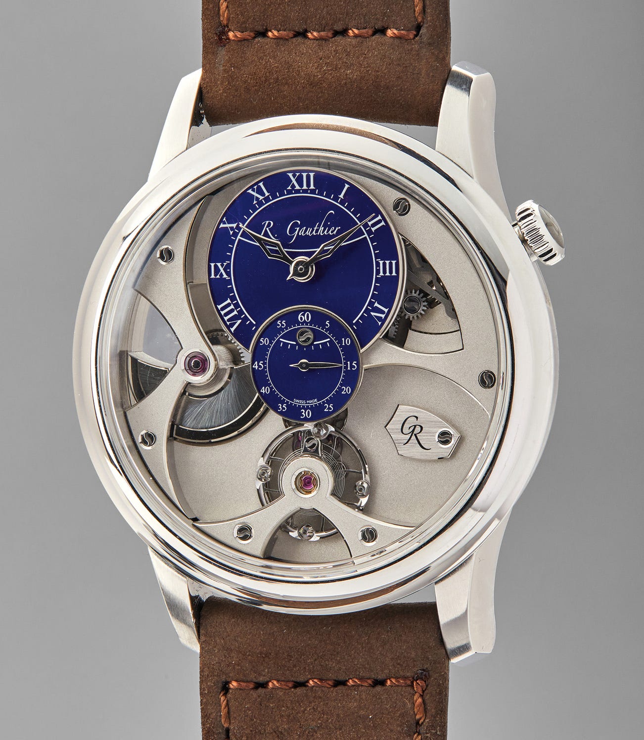Romain Gauthier began his professional life as a micro-mechanical engineer, but he could not deny that watchmaking was in his blood, as both of his parents had worked for manufactures such as Audemars Piguet, Lemania, and Dubois Dépraz. He launched his watch brand in 2005 with the Prestige HM, which was well-received by collectors, largely due to the exquisite movement finishing incorporating brushed and grained finishes with sharply hand-beveled edges. Indeed, no less a personage than Philippe Dufour himself inspired Gauthier not only to establish his own brand rather than a single timepiece, but encourage to push the envelope of craftsmanship.