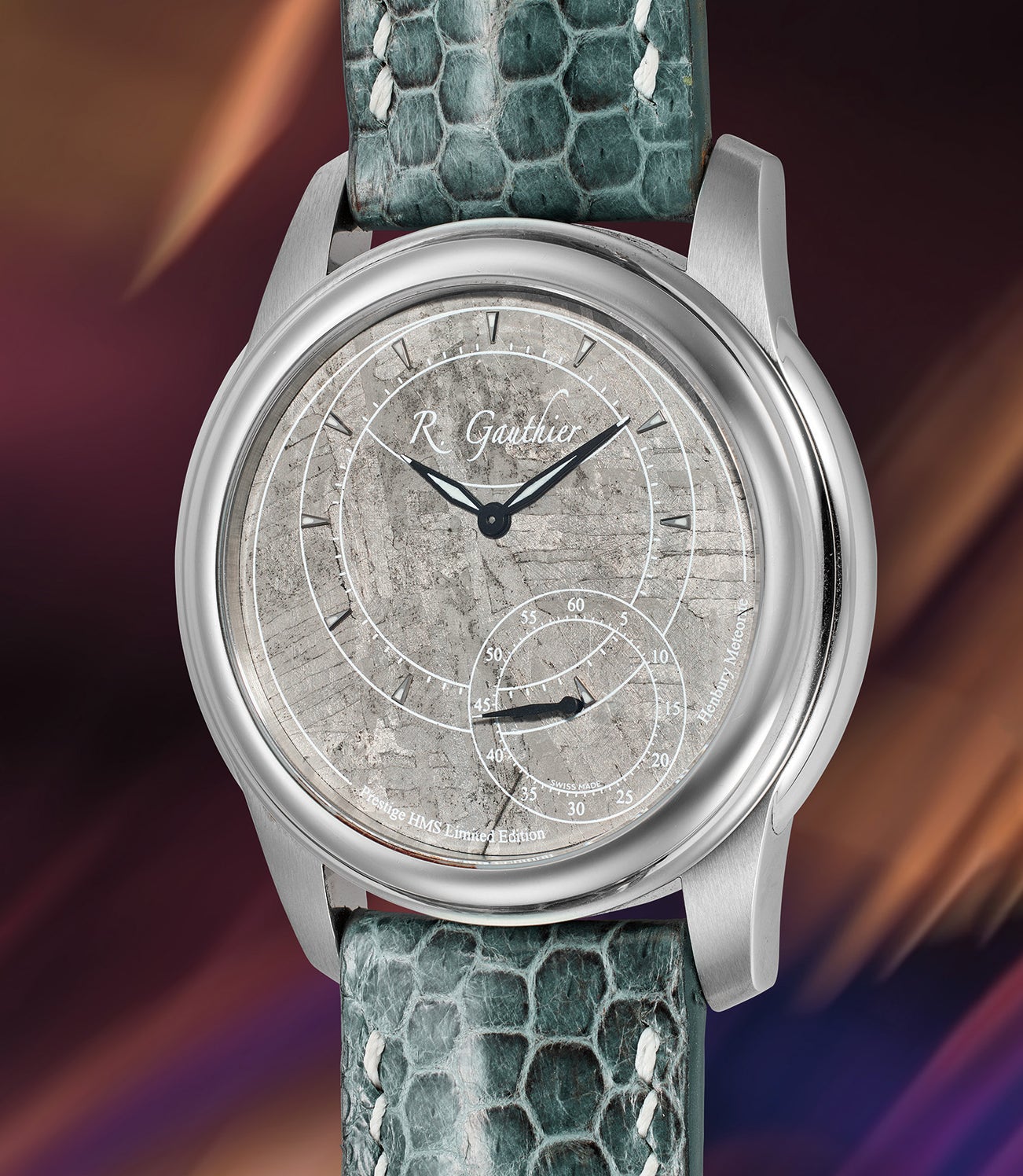 In 2019, Gauthier released an exclusive limited edition of ten pieces in stainless steel fitted with a striking meteorite dial, having never before cased any watches in series in stainless steel. The choice of meteorite was a particularly poignant one, as Gauthier’s father was a rock and mineral collector, and this passion was a visceral part of his childhood. The meteorite was sourced from the Henbury meteorite discovered in 1931 in Australia, noted for its particularly bold Widmanstätten pattern.