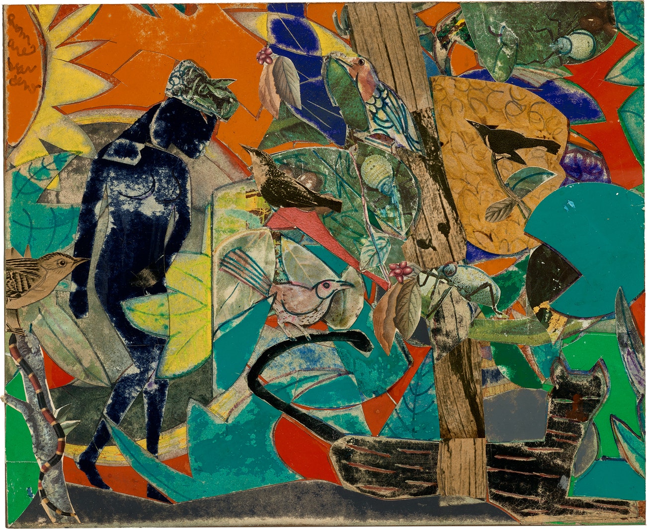 Bearden started making two-dimensional collages in the early 1960s as "an attempt to redefine the image of man in terms of the Black experience”. Bearden’s collages seamlessly integrate painting, magazine clippings and old paper like a jigsaw puzzle into evocative images that fuse snippets of Harlem life with images of the American South, with references to art history, Classical myth, religion and popular culture. "When I conjure these memories, they are of the present to me," Bearden explained. "Because after all, the artist is a kind of enchanter in time." The way Bearden employed collage came out of his life and culture. In a 1977 interview with New Yorker writer Calvin Tomkins, Bearden described how as a young man, “I’d take a sheet of paper and just make lines while I listened to records, a kind of shorthand to pick up the rhythm and the intervals.” The improvisational nature of jazz music, Christian iconography, patchwork quilts, rooms wallpapered with old newspaper recalled from childhood summers in North Carolina, his lifelong study of both Western and African art art –all infused in Bearden’s collages.