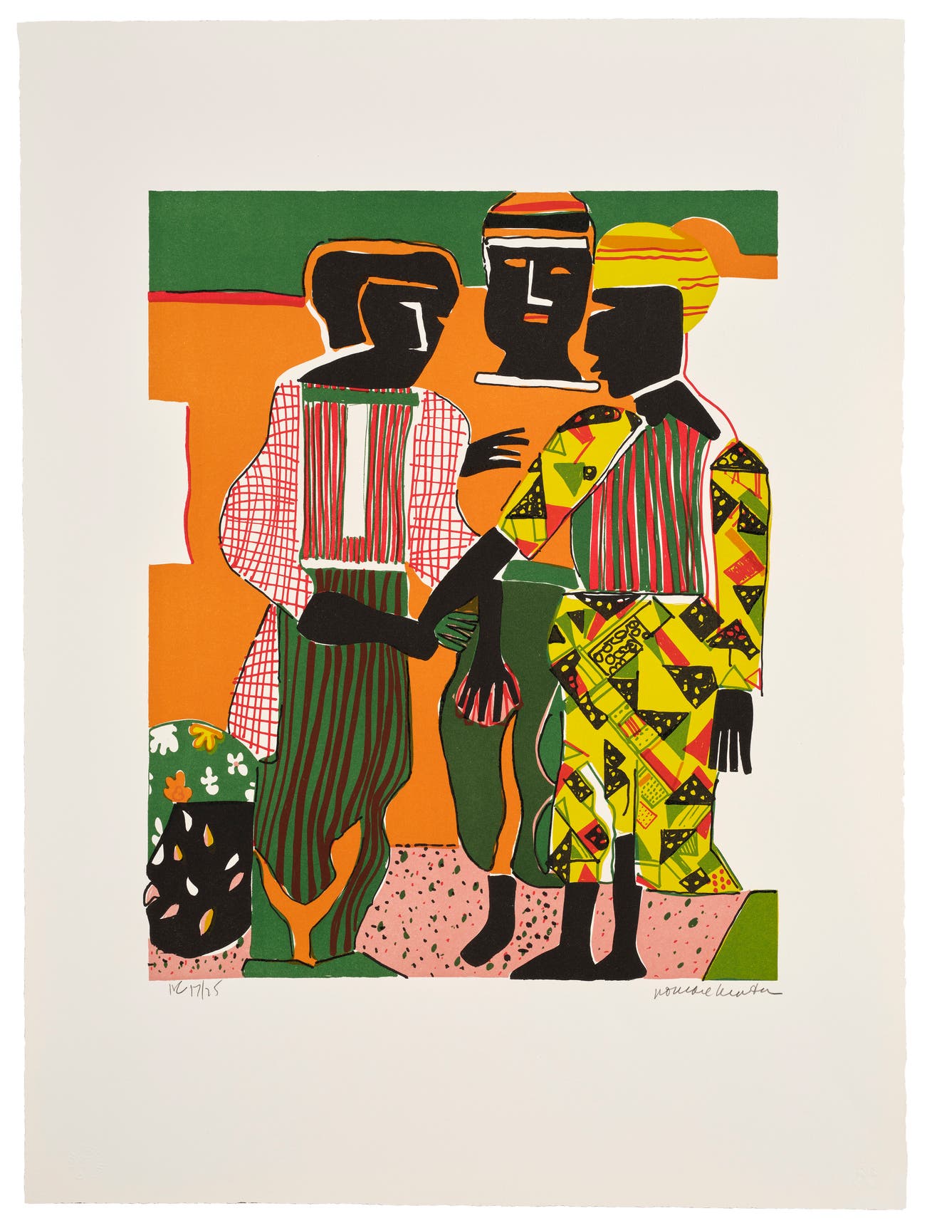 American | B. 1911 D. 1988A master of collage, Romare Bearden has become synonymous with his layered scenes of black life – past, present, and imagined. Born in North Carolina in 1911, Bearden was raised in New York in the heart of the Harlem Renaissance. In the 1930s, he studied at the Arts Student League with George Grosz and was involved with 306, a Harlem art school and workshop where his cousin by marriage, fellow artist Charles Alston, was a leading instructor. Though Bearden won major recognitions in his lifetime, Time art critic Robert Hugues proclaimed in 1991 that “Bearden got left out of the history books” – an oversight that has since been rectified with major retrospectives worldwide. In 2003 the National Gallery of Art held a retrospective of Bearden’s work, the first for an African-American artist in the museum’s history, with the exhibition firmly cementing his legacy as one of the great innovators of the 20th century.