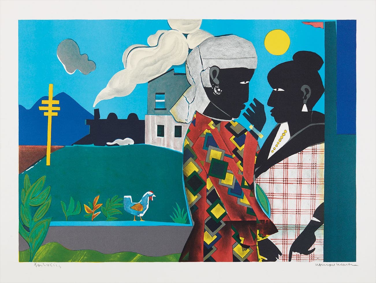 American | B. 1911 D. 1988A master of collage, Romare Bearden has become synonymous with his layered scenes of black life – past, present, and imagined. Born in North Carolina in 1911, Bearden was raised in New York in the heart of the Harlem Renaissance. In the 1930s, he studied at the Arts Student League with George Grosz and was involved with 306, a Harlem art school and workshop where his cousin by marriage, fellow artist Charles Alston, was a leading instructor. Though Bearden won major recognitions in his lifetime, Time art critic Robert Hugues proclaimed in 1991 that “Bearden got left out of the history books” – an oversight that has since been rectified with major retrospectives worldwide. In 2003 the National Gallery of Art held a retrospective of Bearden’s work, the first for an African-American artist in the museum’s history, with the exhibition firmly cementing his legacy as one of the great innovators of the 20th century.