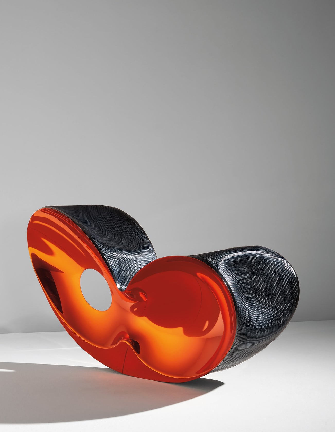 A persistent theme throughout his work is innovation and the idea of the "new." Still producing work today, Arad uses the latest technology to produce his designs and also integrates it within his pieces, such as his Lolita Chandelier (2004) that can receive and display text messages. Arad also continually experiments with materials and has an exceptional skill to coax volume and undulation out of them, with a particular affinity for metal. His works such as The Big Easy chair (1988) walk the line between design and sculpture. Once an outsider, Arad's relentless energy to design, build and collaborate has placed him firmly within the highest ranks of the design world.