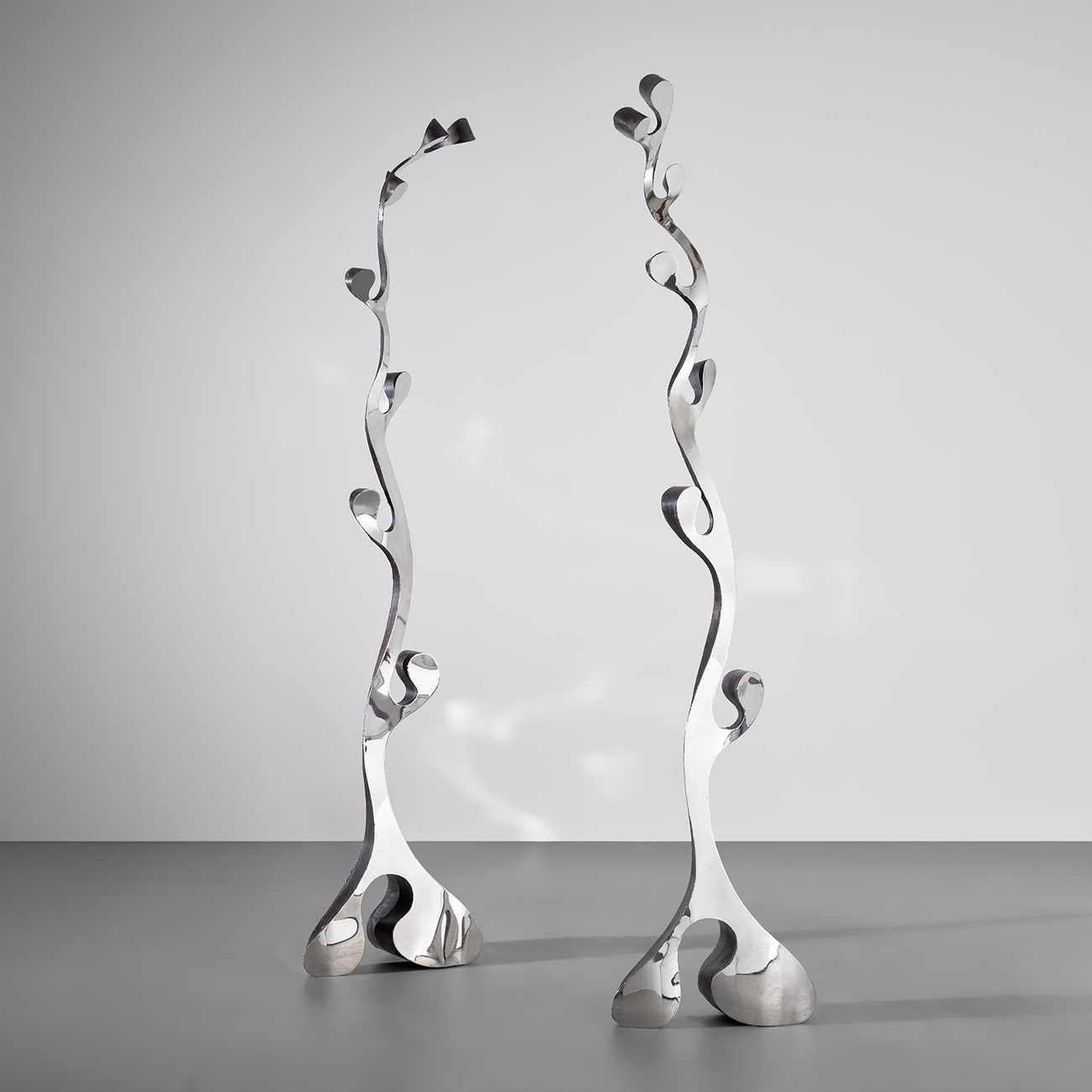 A persistent theme throughout his work is innovation and the idea of the "new." Still producing work today, Arad uses the latest technology to produce his designs and also integrates it within his pieces, such as his Lolita Chandelier (2004) that can receive and display text messages. Arad also continually experiments with materials and has an exceptional skill to coax volume and undulation out of them, with a particular affinity for metal. His works such as The Big Easy chair (1988) walk the line between design and sculpture. Once an outsider, Arad's relentless energy to design, build and collaborate has placed him firmly within the highest ranks of the design world.