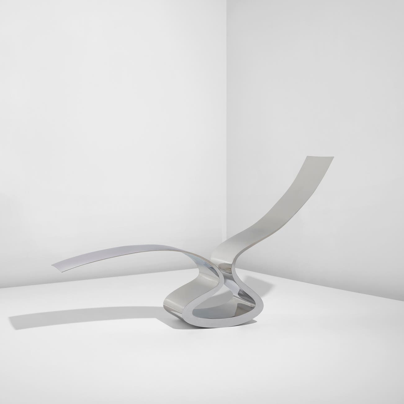 A persistent theme throughout his work is innovation and the idea of the "new." Still producing work today, Arad uses the latest technology to produce his designs and also integrates it within his pieces, such as his Lolita Chandelier (2004) that can receive and display text messages. Arad also continually experiments with materials and has an exceptional skill to coax volume and undulation out of them, with a particular affinity for metal. His works such as The Big Easy chair (1988) walk the line between design and sculpture. Once an outsider, Arad's relentless energy to design, build and collaborate has placed him firmly within the highest ranks of the design world.