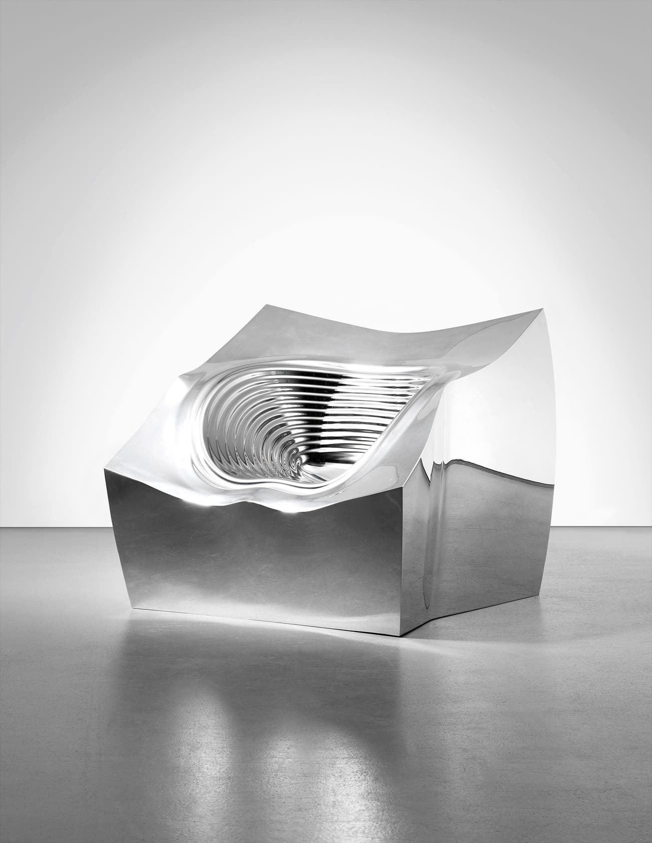 A persistent theme throughout his work is innovation and the idea of the "new." Still producing work today, Arad uses the latest technology to produce his designs and also integrates it within his pieces, such as his Lolita Chandelier (2004) that can receive and display text messages. Arad also continually experiments with materials and has an exceptional skill to coax volume and undulation out of them, with a particular affinity for metal. His works such as The Big Easy chair (1988) walk the line between design and sculpture. Once an outsider, Arad's relentless energy to design, build and collaborate has placed him firmly within the highest ranks of the design world.