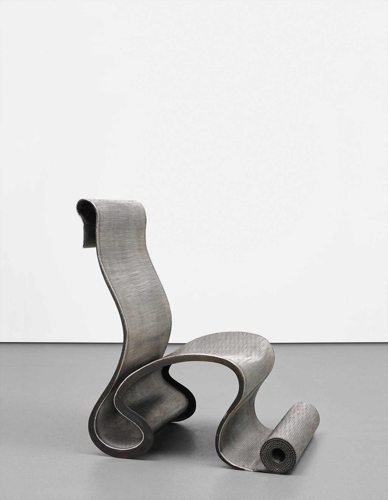 A persistent theme throughout his work is innovation and the idea of the "new." Still producing work today, Arad uses the latest technology to produce his designs and also integrates it within his pieces, such as his Lolita Chandelier (2004) that can receive and display text messages. Arad also continually experiments with materials and has an exceptional skill to coax volume and undulation out of them, with a particular affinity for metal. His works such as The Big Easy chair (1988) walk the line between design and sculpture. Once an outsider, Arad's relentless energy to design, build and collaborate has placed him firmly within the highest ranks of the design world.