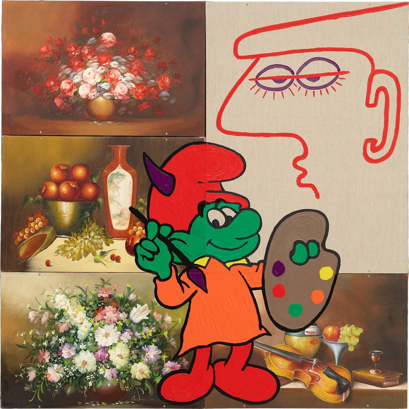 signed and dated "Ronnie Cutrone 84" on the reverse; signed, titled and dated ""A-HEAD OF HIS TIME" Ronnie Cutrone 1984" on the stretcher
