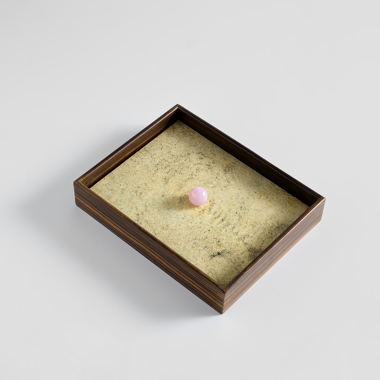 Macassar ebony-veneered wood, shagreen, rose quartz.