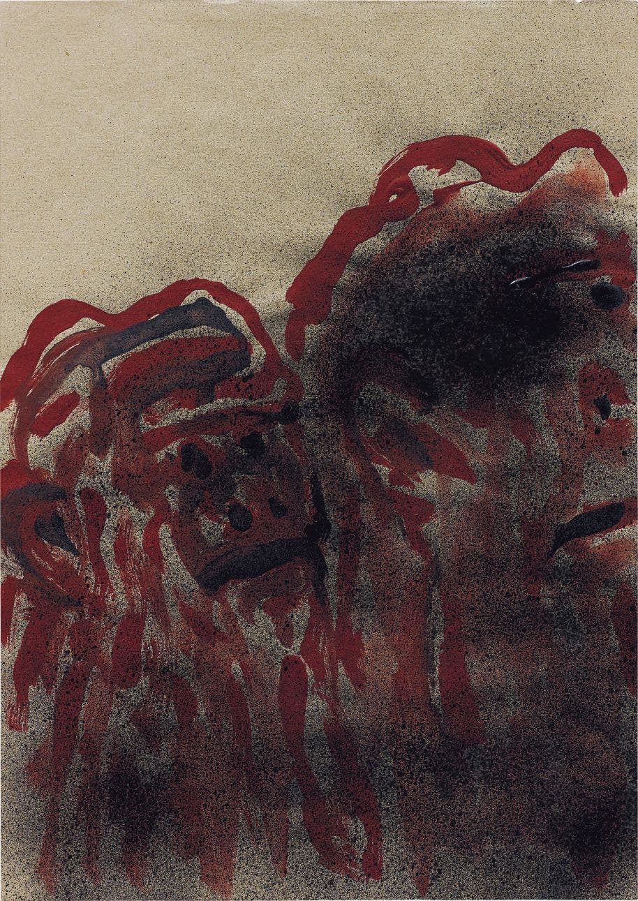 gouache and spray paint on paper