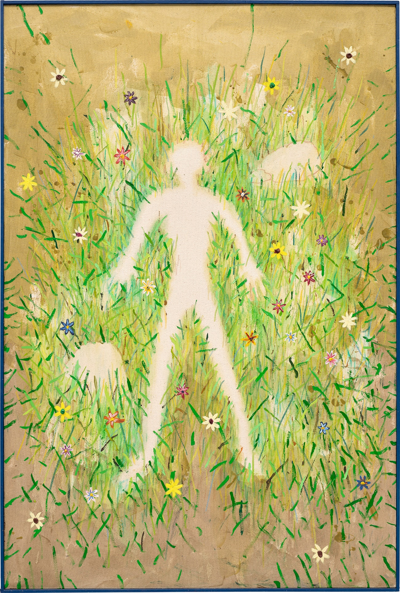 acrylic, oil and coloured pencil on canvas, in artist's frame