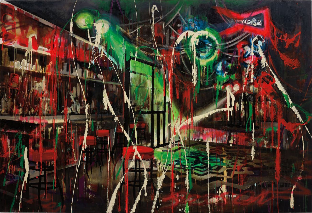 acrylic, enamel, spray paint, oil on canvas