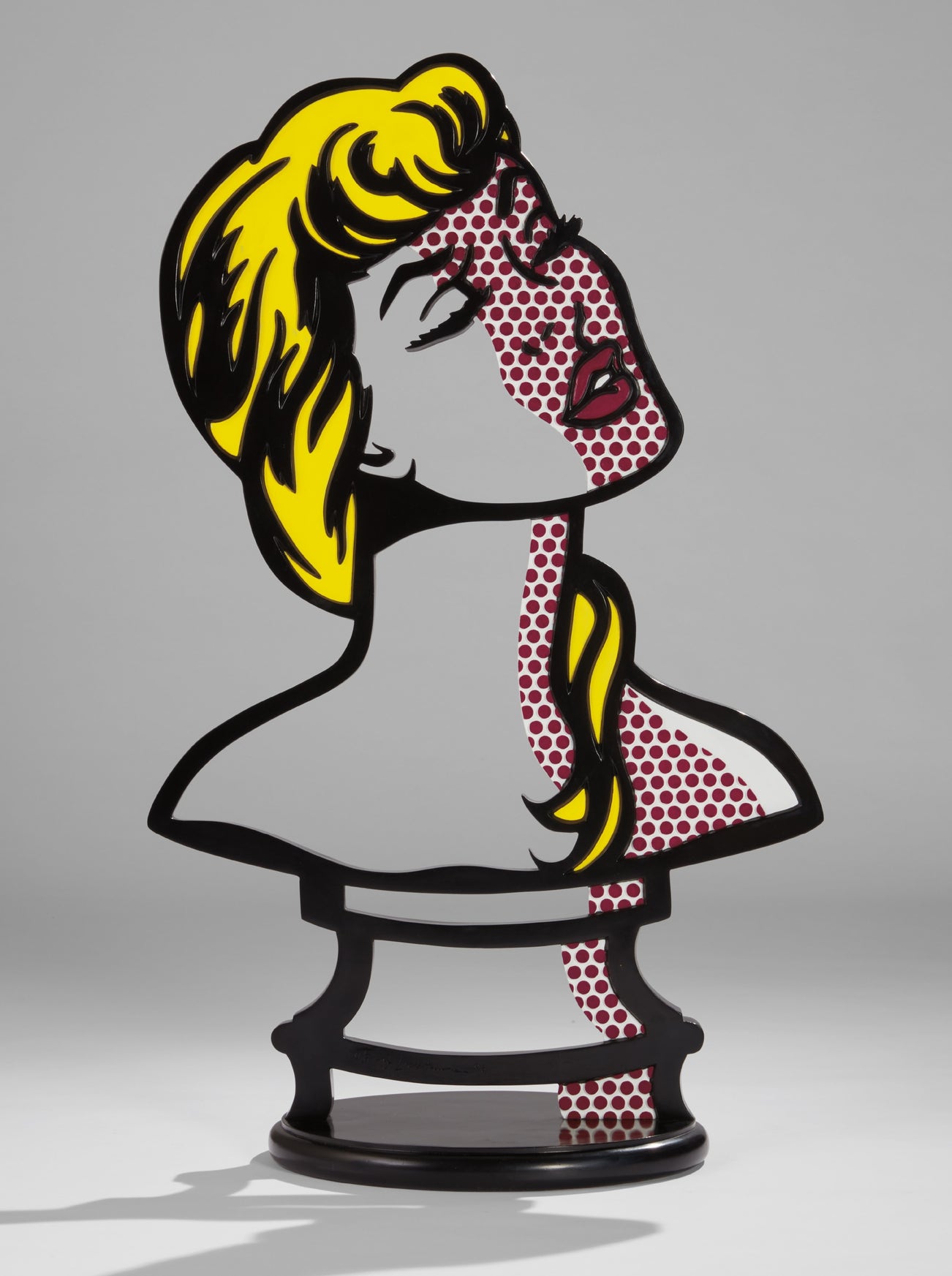 The resulting portrait represents the peak of Lichtenstein's over five-decade inquiry into the possibilities of sculpture. Indeed, sculpture had occupied a central position in Lichtenstein’s oeuvre from its very beginnings: while Lichtenstein already experimented with carved wood and stone, terracotta and various assemblages as early as the 1940s, it was notably of the mid-1960s that he embraced the sculptural form as means to further his unique Pop idiom - translating inherently two-dimensional source images into sculptural form. In 1967, Lichtenstein declared, "I was interested in putting two-dimensional symbols on a three-dimensional object" (John Coplans, Roy Lichtenstein, 1967, p. 16). However, in contrast to Lichtenstein's early sculpture Woman: Sunlight, Moonlight distinguishes itself with its radical flatness. Woman: Sunlight, Moonlight brilliantly articulates the way in which the artist blurs the boundaries of drawing, sculpture, and painting. “These pieces”, art critic and art historian Hal Foster indeed explained, "exist between painting and sculpture in terms not only of genre but also of structure; where Minimalist objects are neither painting nor sculpture… Pop objects tend to be both-and. If most representational painting is a two-dimensional encoding of three dimensional objects, Lichtenstein reverses the process here, and freezes it somewhere in between” (Hal Foster, 'Pop Pygmalion, in Roy Lichtenstein Sculpture, exh. cat., London, Gagosian Gallery, 2005, p. 10).