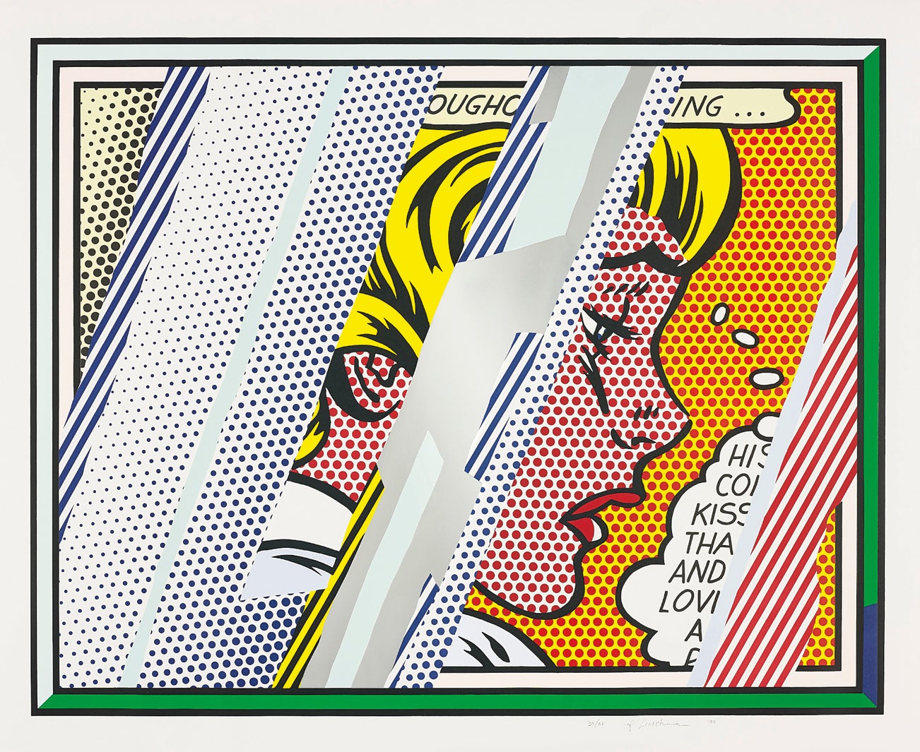 Lithograph, screenprint and relief in colours with metallized PVC collage and embossing, on Somerset paper, with full margins.