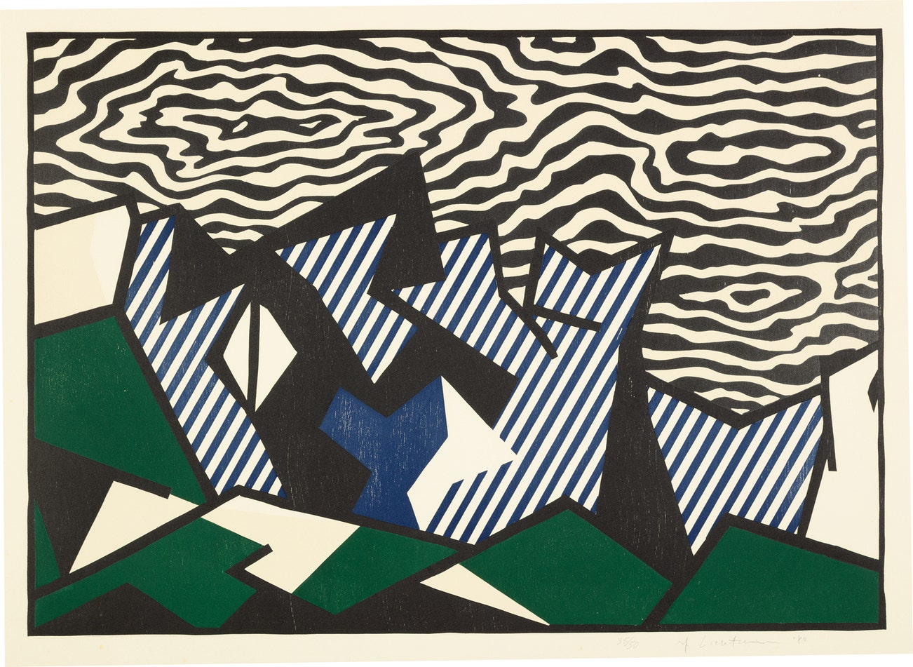 Woodcut in colors with embossing, on Arches Cover paper, with full margins.