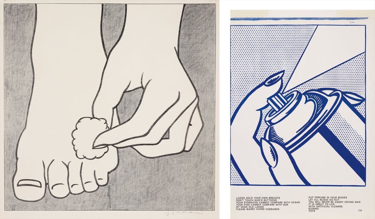 foot signed in pencil, from the unnumbered edition of unknown size (there were also 100 numbered impressions), spray from the unsigned regular edition of 2,000, published by E.W. Kornfeld, Bern and Leo Castelli Gallery, New York respectively, both framed.