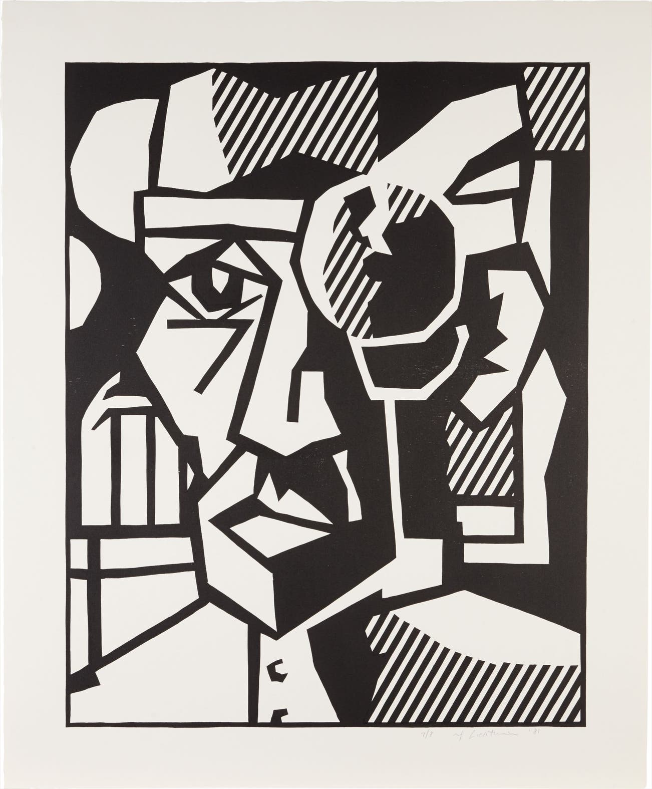 Signed, dated and numbered "7/8 rf Lichtenstein '81" lower right; further blind stamped "© Gemini G.E.L." lower right. Stamped "© Gemini G.E.L., Los Angeles" on the reverse. Numbered "RL80-939A" on the reverse. This work is number 7 from an edition of 8.