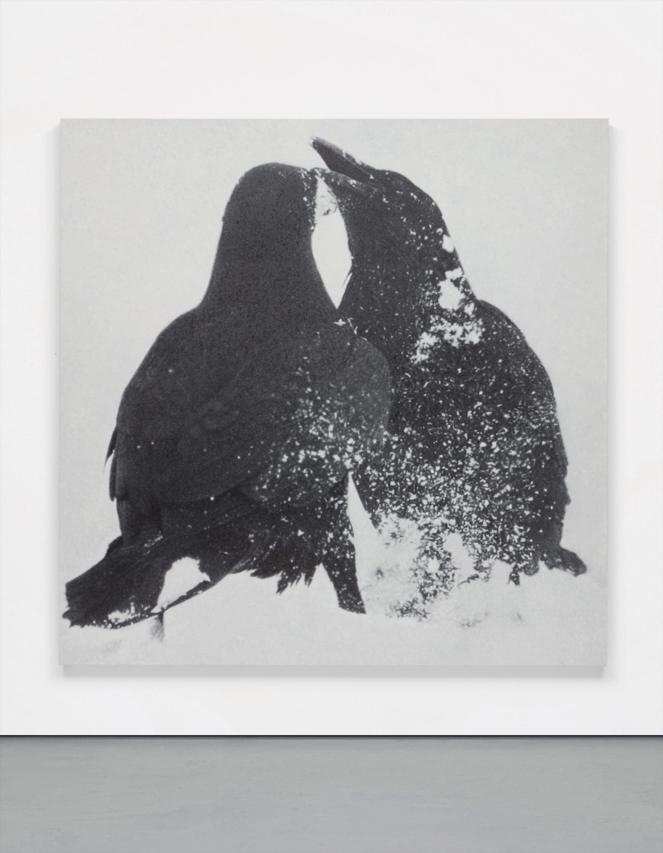 With Untitled, Stingel presents on an epic scale a pair of squabbling ravens kicking off a flurry of snow. Executed in 2015, Untitled is one of a handful of colossal square paintings based on wildlife photographs lifted from a vintage German calendar where each month was accompanied by a different animal from a regional landscape – each painstakingly painted to mimic the original condition of the photographic image. From afar, Untitled appears like a trompe l'oeil; however, upon closer consideration, the photographic realism dissolves into a painterly abstraction composed from a meticulous system of thick, accrued brushstrokes that endow the surface with a textured physicality. A striking example of the artist’s photo-realistic body of work that he began in 2005, Untitled brilliantly attests to Stingel’s three-decade long pursuit of pushing the physical and conceptual limits of painting to explore the passage of time.