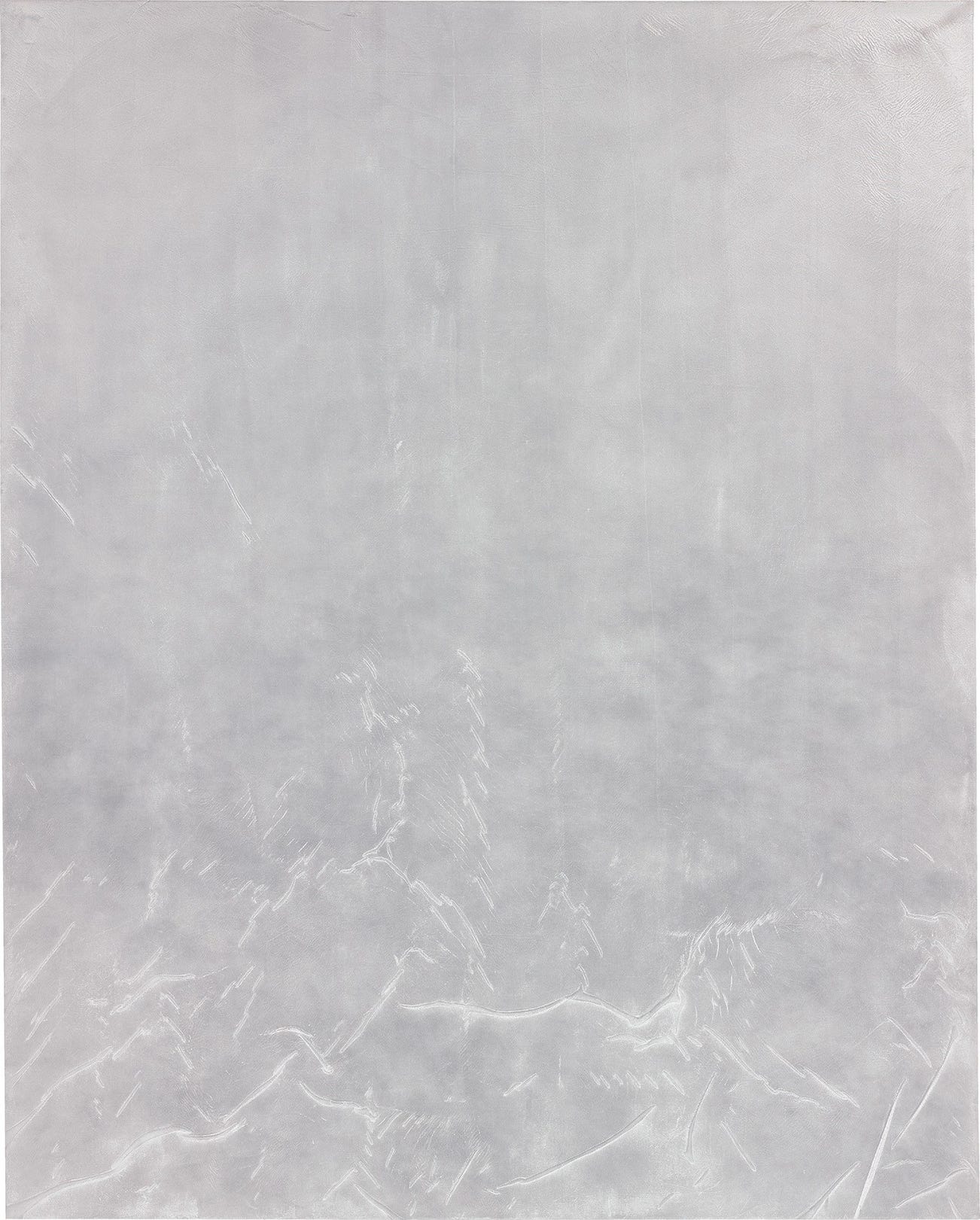With Untitled, the exploration of the silver pigment, and the emulation of a material other than a painterly support furthermore call to mind a number of artists who similarly approached colour and medium as realms to investigate and break through. Vija Celmins’ poetic seascapes, moon surfaces and land shots betray an attentive eye and laborious technique that Stingel equally cultivates in his process. As with Celmins, the painter’s results are seamless, transforming into something that they are not through sheer pictorial conviction. From another perspective, the focus on colour and the plasticity of pigment have also been subjects in themselves since the beginning of painting. In the modern canon, a few names crop up instinctively – those of Yves Klein and Pierre Soulages; yet the variegated surface texture of the present work here more powerfully recalls the surface undulations of Piero Manzoni’s Achromes.
