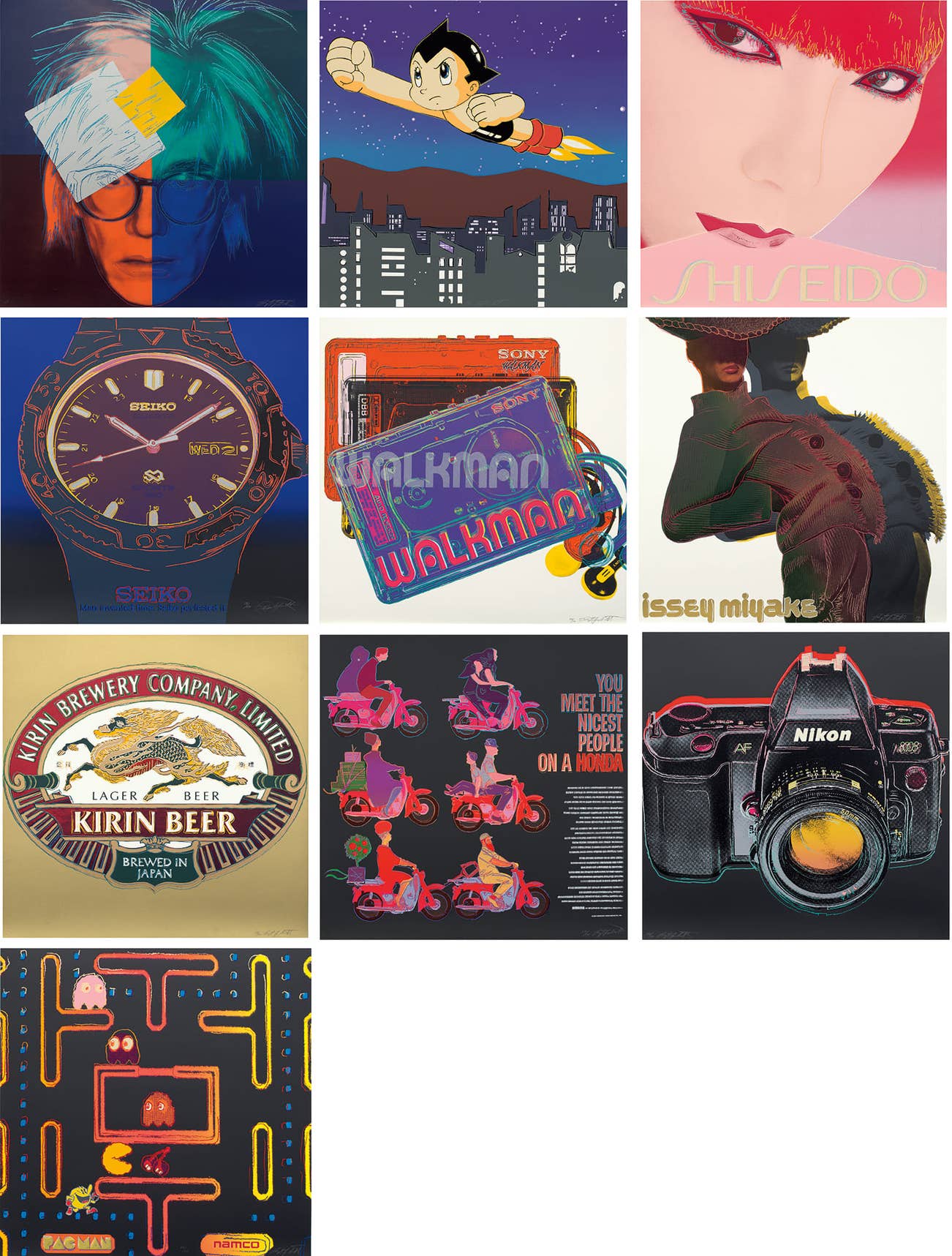 Including: Andy Warhol-Self Portrait; Astroboy; Shiseido-Sayoko Yamaguchi; Seiko - Sportswatch; Sony-Walkman; Issey Miyake - Ads; Kirin Beer-Label; Honda-Ads in US Campaign; Nikon-AF/N8008; and Namco-Packman