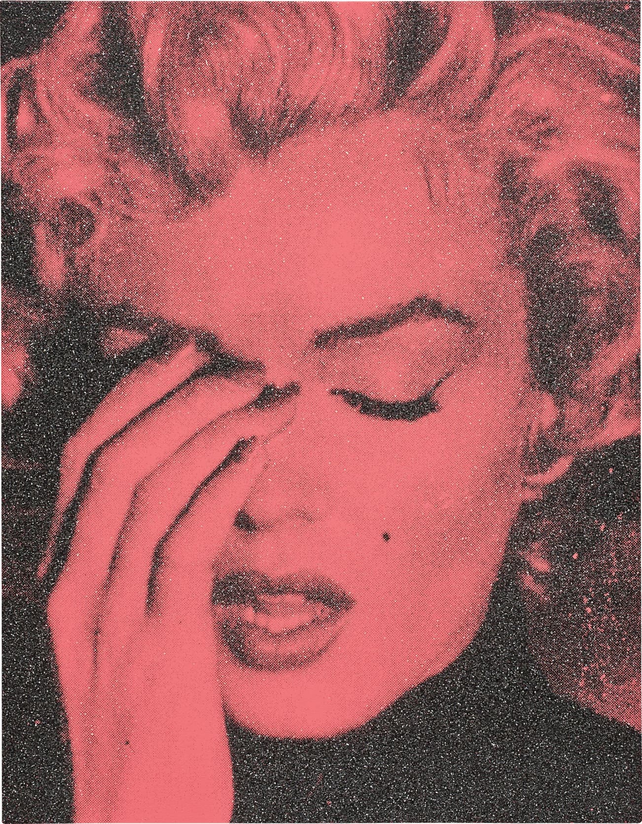 Signed, titled, dated and annotated "Russell Young 2013 Marilyn Crying CX2013 French rose and black" on the reverse.