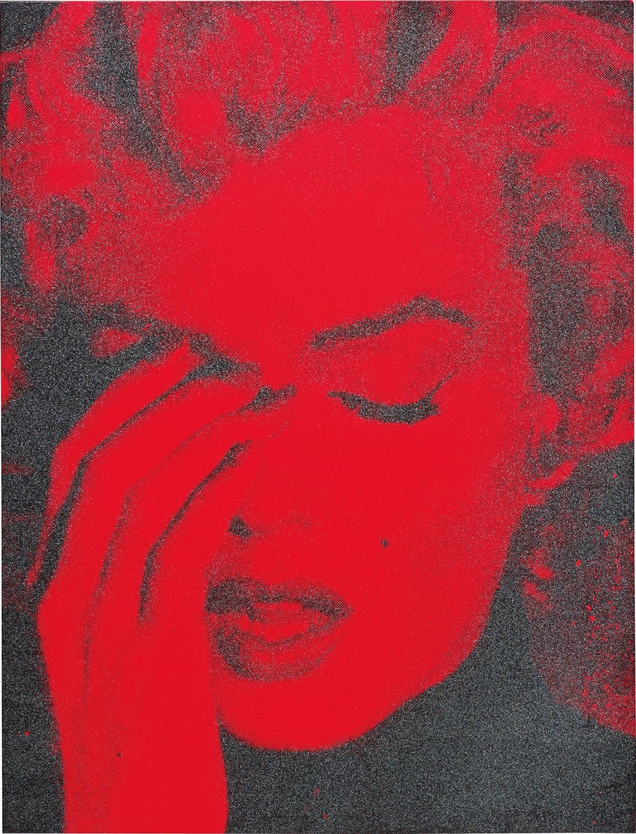 Signed, titled, inscribed and dated 'Russell Young 2013 marilyn crying 2013 candy apple red + black' on the reverse. Further inscribed 'CANDY APPLE RED' on the overlap.