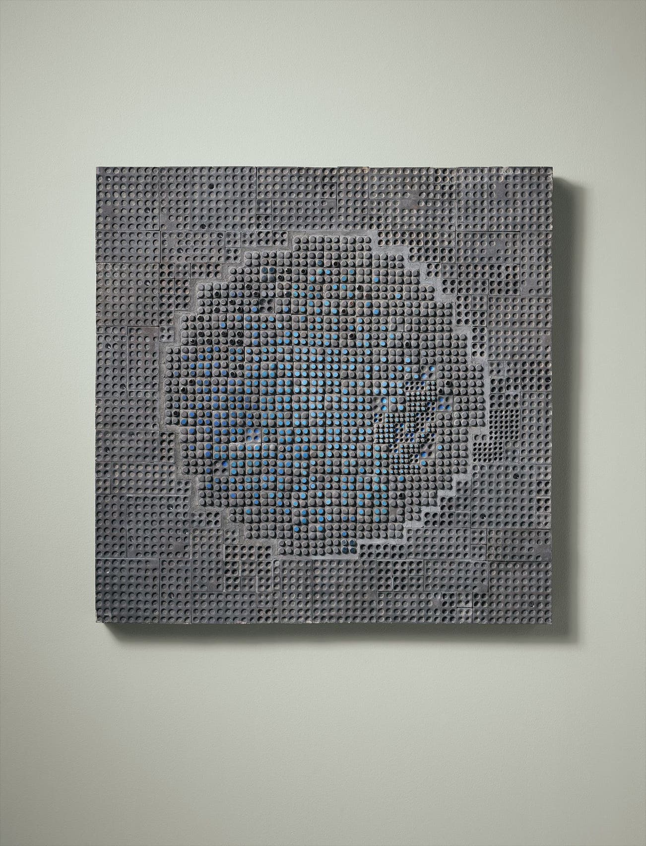 Glazed ceramic tiles mounted on wood board, pigment.