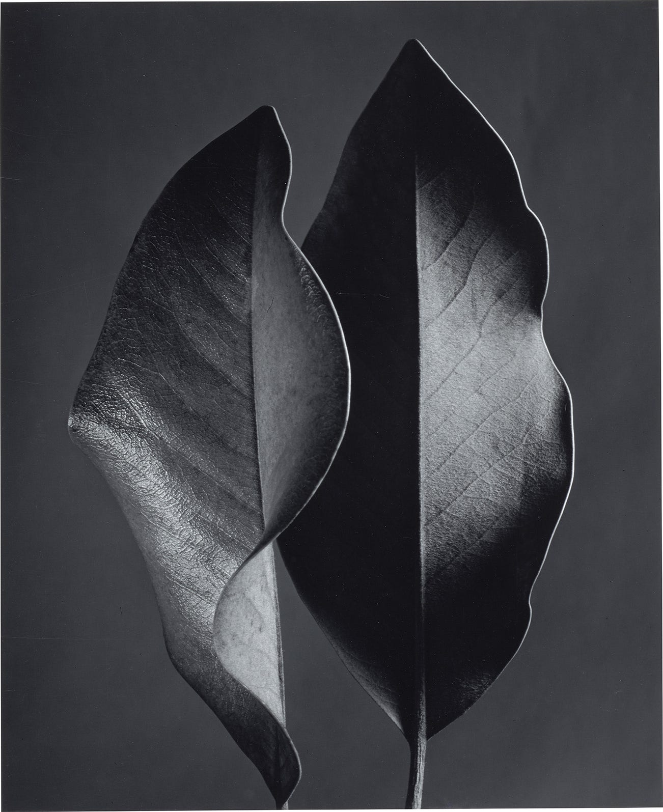 signed 'Ruth Bernhard' lower right of the mount; further signed, titled and dated 'Two Leaves - 1952 Ruth Bernhard' on the reverse of the mount