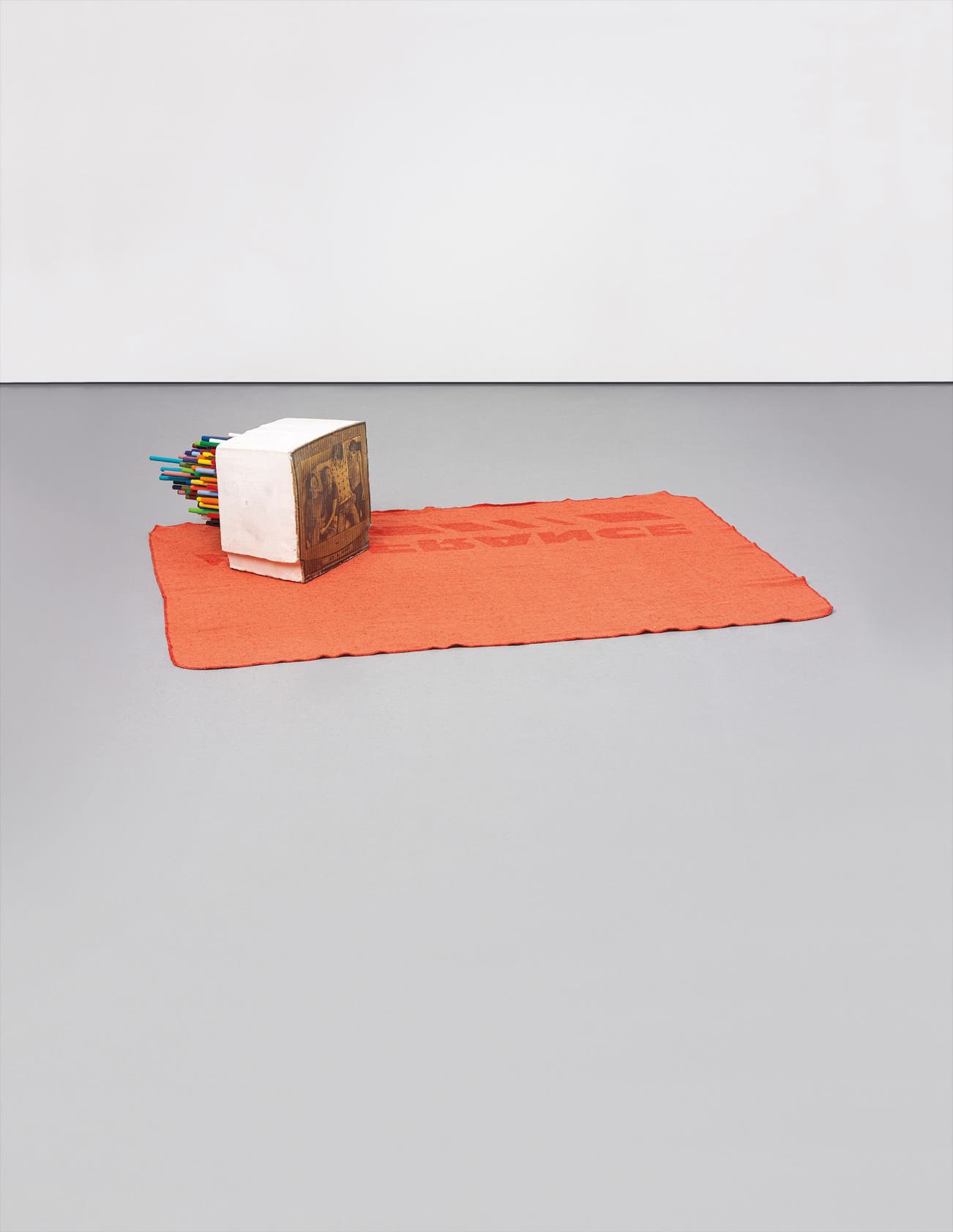 cardboard cut-out, foam, plaster, silver leaf, dowels, paint