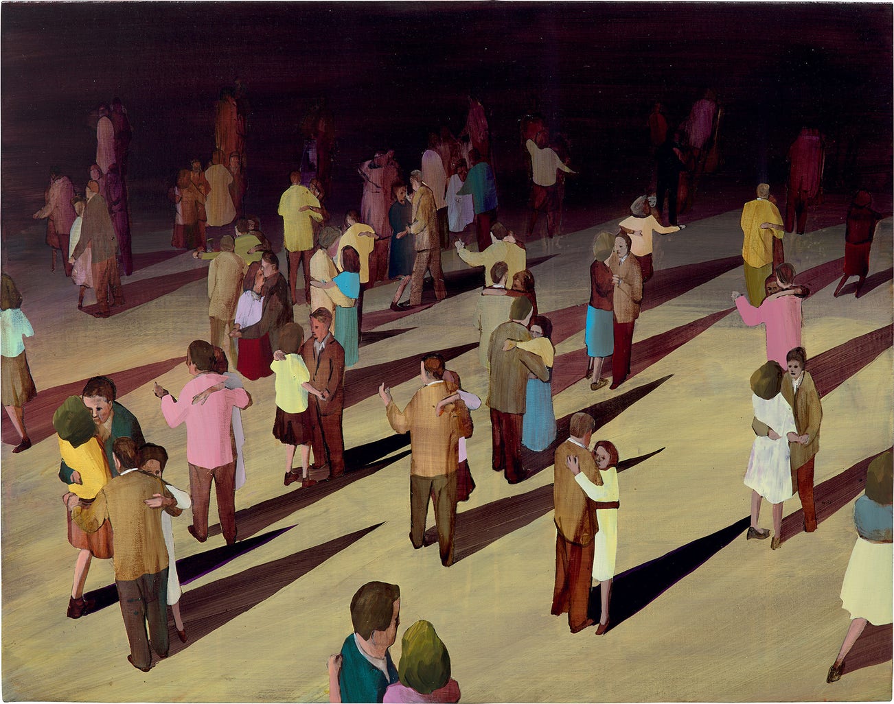 signed, titled, inscribed and dated "Ryan Mrozowski 'Couples with geometric shadows' acrylic 2009" on the reverse
