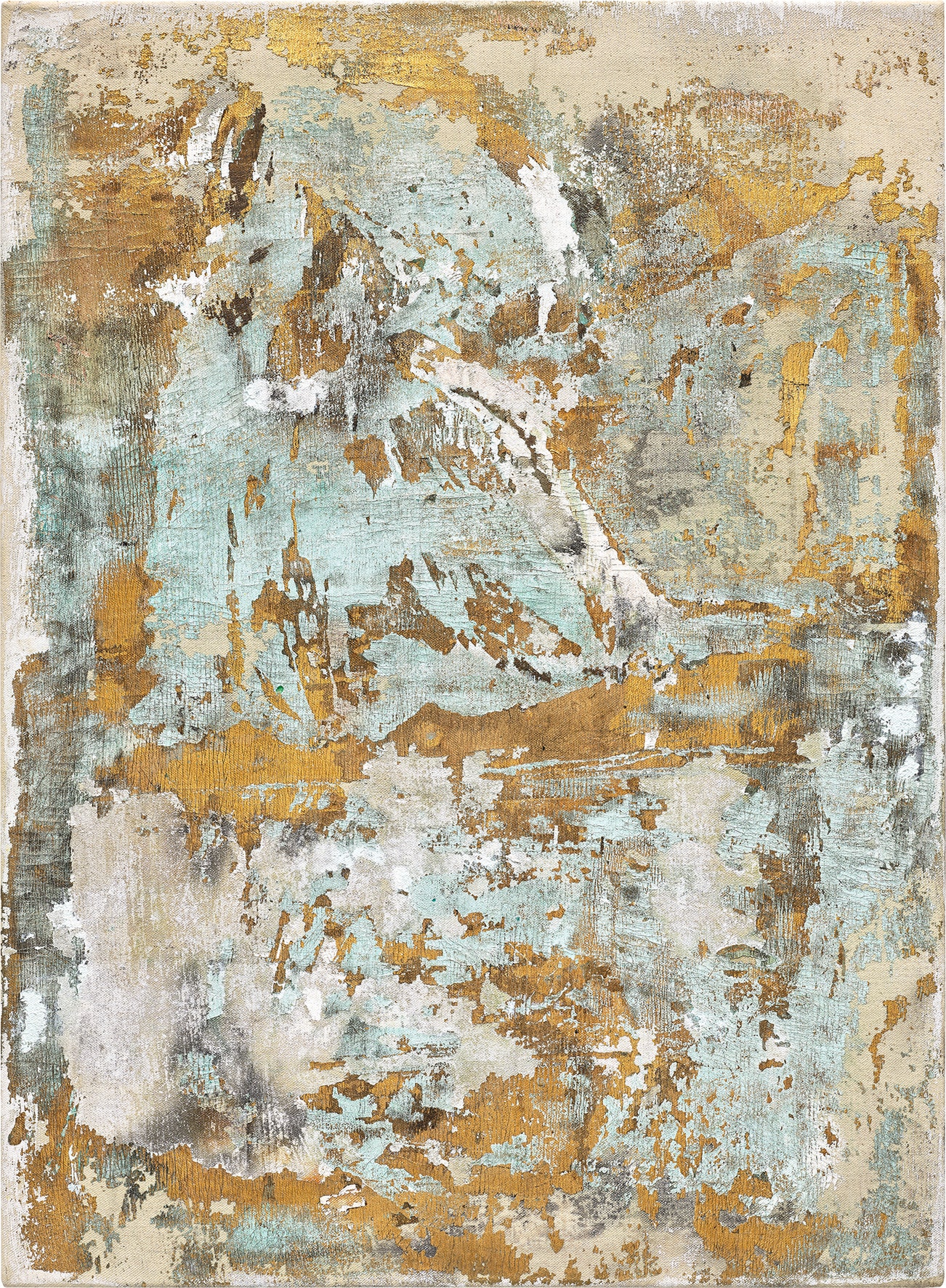 brass, oil, acrylic and ink on canvas