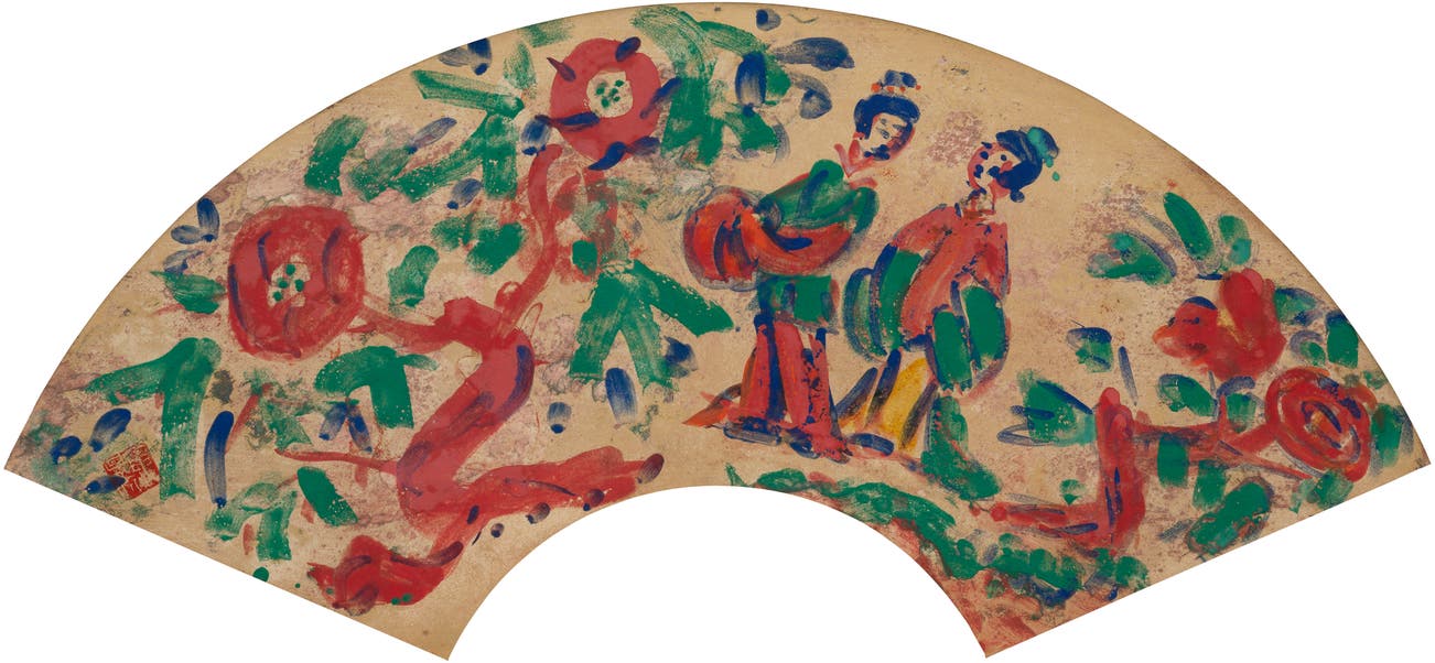 stamp with the artist's seal lower left; further signed, titled and stamped with the artist's seal '"Tou Bijin" Umehara Ryuzaburo [in Kanji]' on the artist's wood box lid