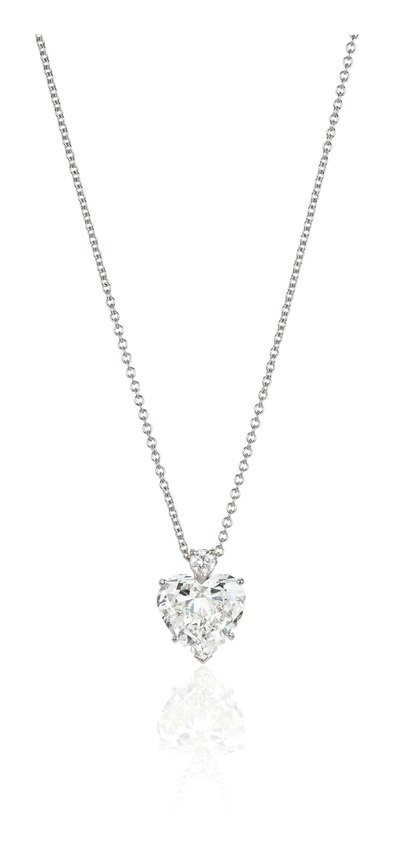 Platinum and 14K white gold, length approximately 15.75 inches, pendant length approximately 0.65 inch