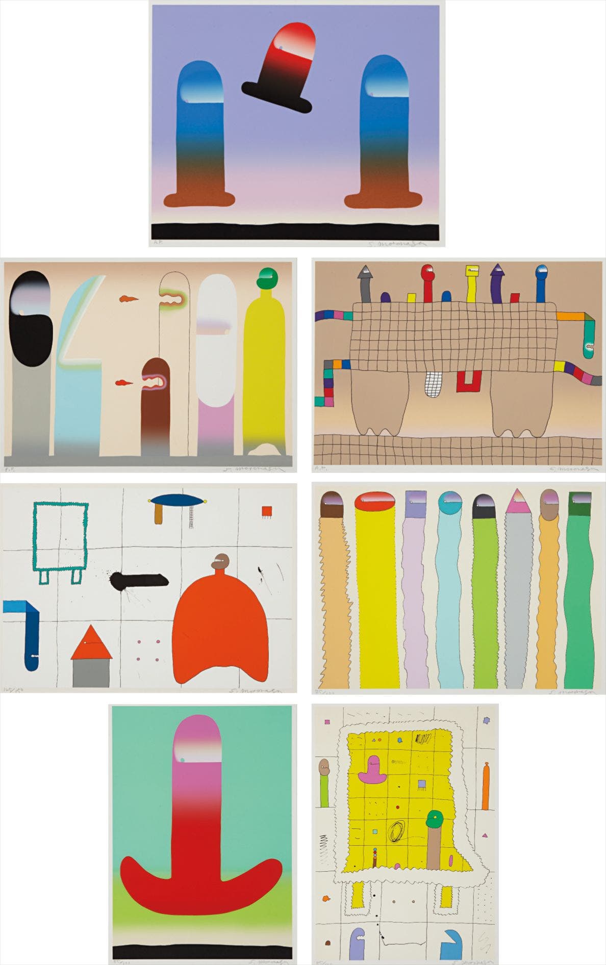 Seven screenprints in colors, on Rives BFK paper, with full margins,