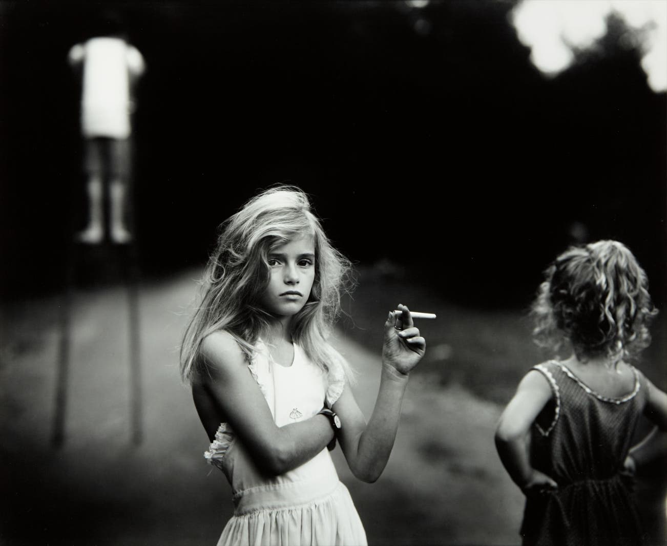 Sally Mann’s famed body of work Immediate Family, documents her three children, Emmett, Jessie and Virginia in an array of scenes at their home in the foothills of the Blue Ridge Mountains in Virginia. Capturing them as they sleep, interact, dress up and role play, Mann’s photographs highlight a heightened maturity that defies their age, creating a tension between the push of childhood and the pull of adulthood. Even when the scenes themselves are innocent, there is a knowing gaze from the subject that charges the image. In the present lot, Mann’s eldest daughter Jessie stares defiantly at the camera, with tousled hair and a candy cigarette exhibiting a self-awareness as both a female and subject of her mother’s lens. While Mann’s work has consistently come under public scrutiny for its intimate subject matter, at the root of the work is a family album filled with the stories, memories and moments that define Mann as a mother and photographer.