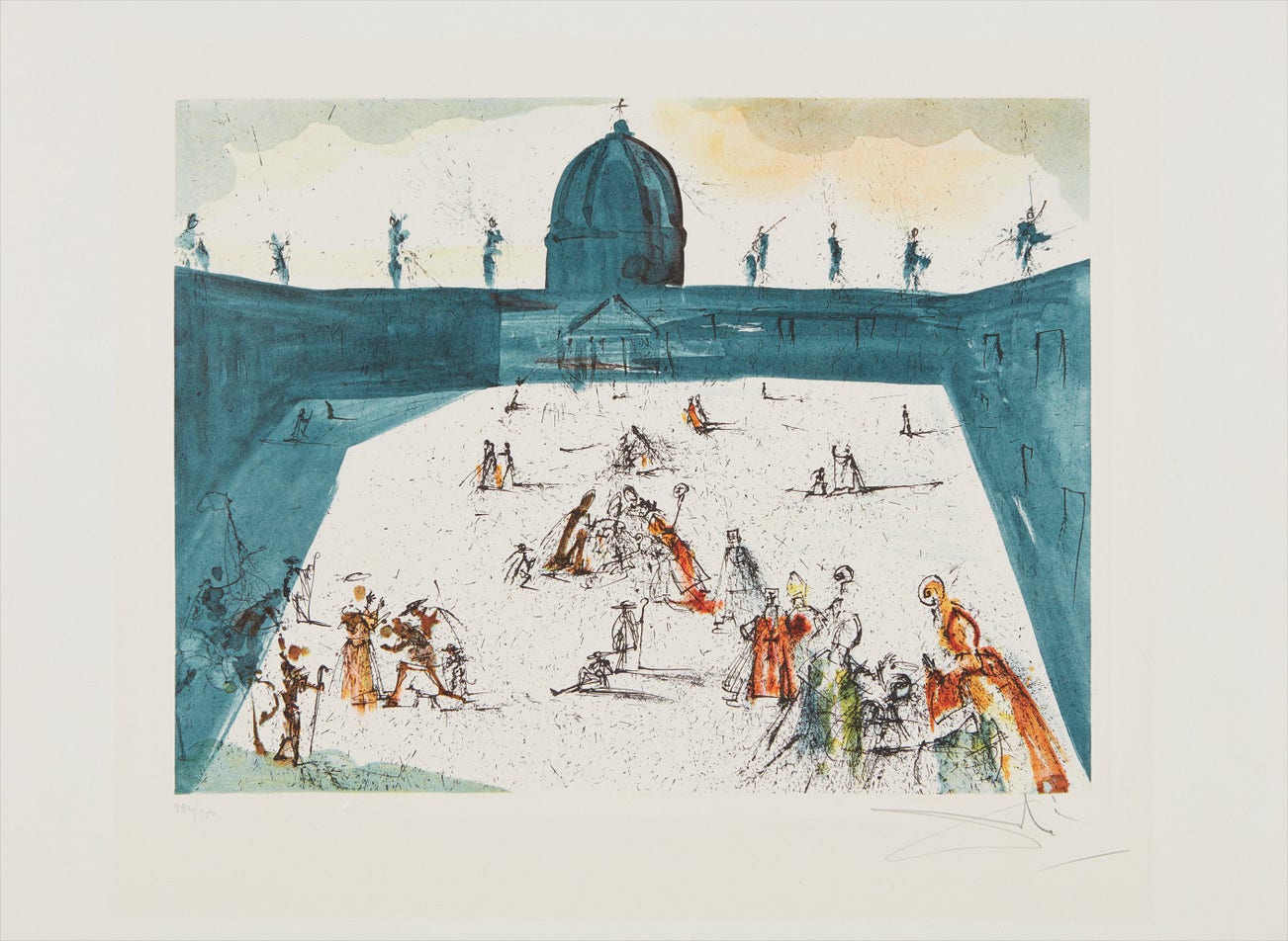 Spanish | B. 1904 D. 1989Salvador Dalí was perhaps the most broadly known member of the Surrealist movement of the early twentieth century. Heavily influenced by Sigmund Freud, the avant-garde style explored consciousness and dream-like states through exaggerated landscapes and bizarre or grotesque imagery. Using the means of painting, sculpture, printmaking, film and literature, Dalí explored these ideas with a meticulous hand and inventive wit.