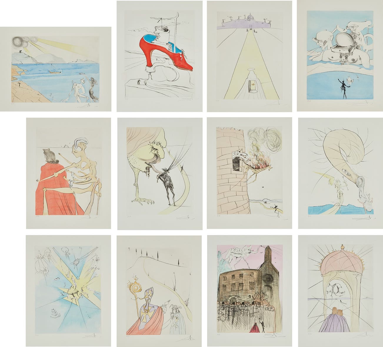 Spanish | B. 1904 D. 1989Salvador Dalí was perhaps the most broadly known member of the Surrealist movement of the early twentieth century. Heavily influenced by Sigmund Freud, the avant-garde style explored consciousness and dream-like states through exaggerated landscapes and bizarre or grotesque imagery. Using the means of painting, sculpture, printmaking, film and literature, Dalí explored these ideas with a meticulous hand and inventive wit.