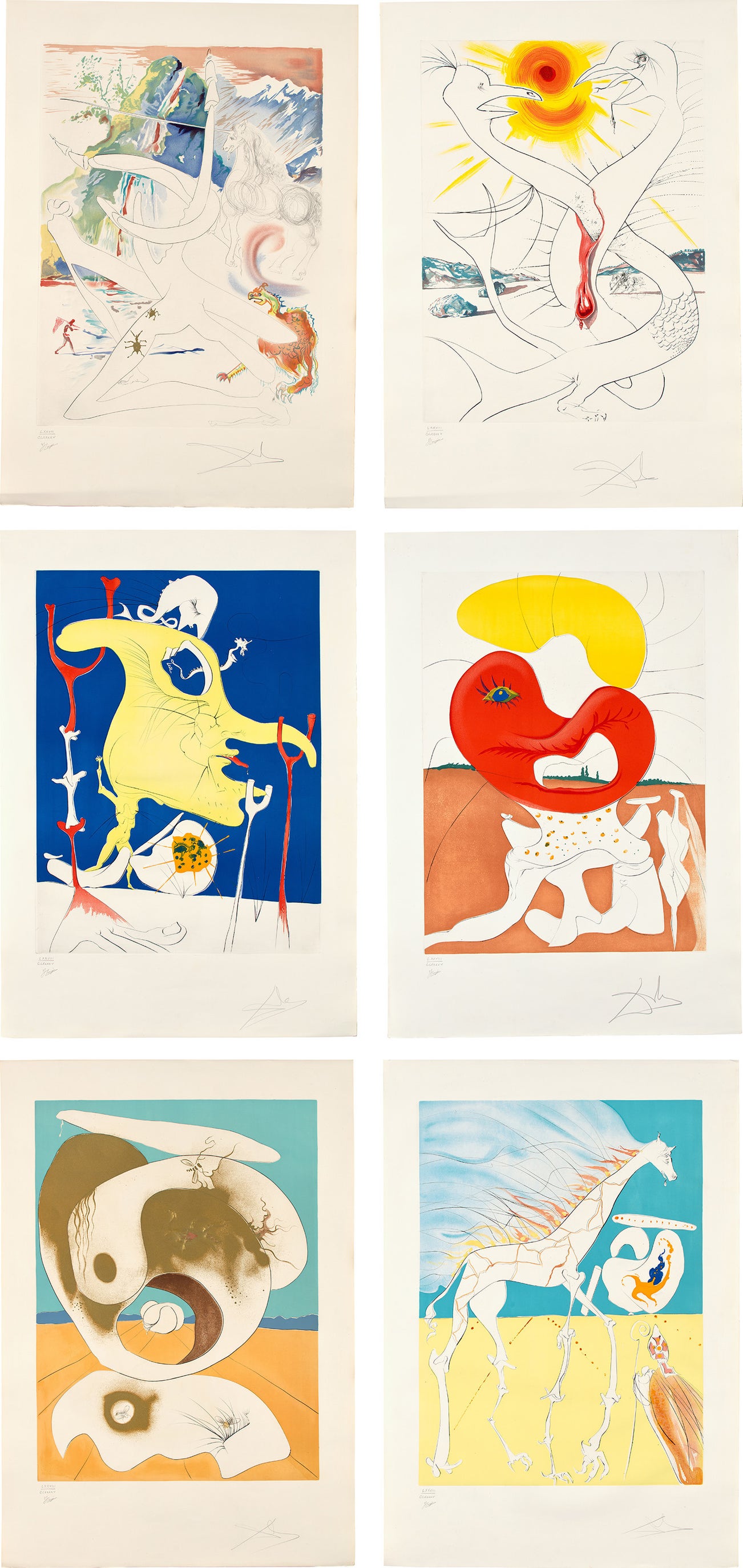 Spanish | B. 1904 D. 1989Salvador Dalí was perhaps the most broadly known member of the Surrealist movement of the early twentieth century. Heavily influenced by Sigmund Freud, the avant-garde style explored consciousness and dream-like states through exaggerated landscapes and bizarre or grotesque imagery. Using the means of painting, sculpture, printmaking, film and literature, Dalí explored these ideas with a meticulous hand and inventive wit.