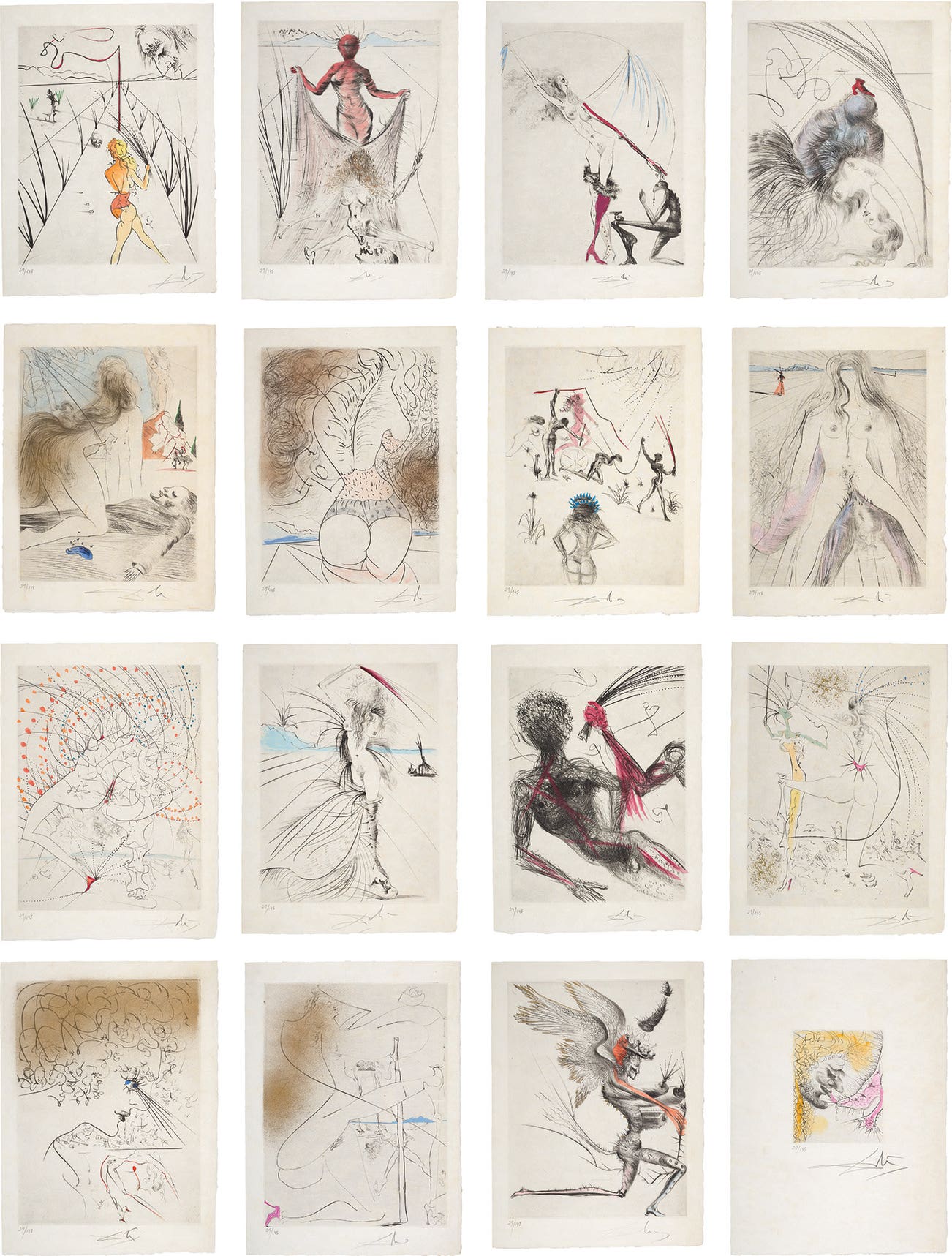 All signed and numbered 29/145 in pencil, 15 with further embossed signature (there was also an edition of 294 on various papers), published by Graphik Europa Anstalt, Paris, all unframed, lacking the accompanying four vignettes.