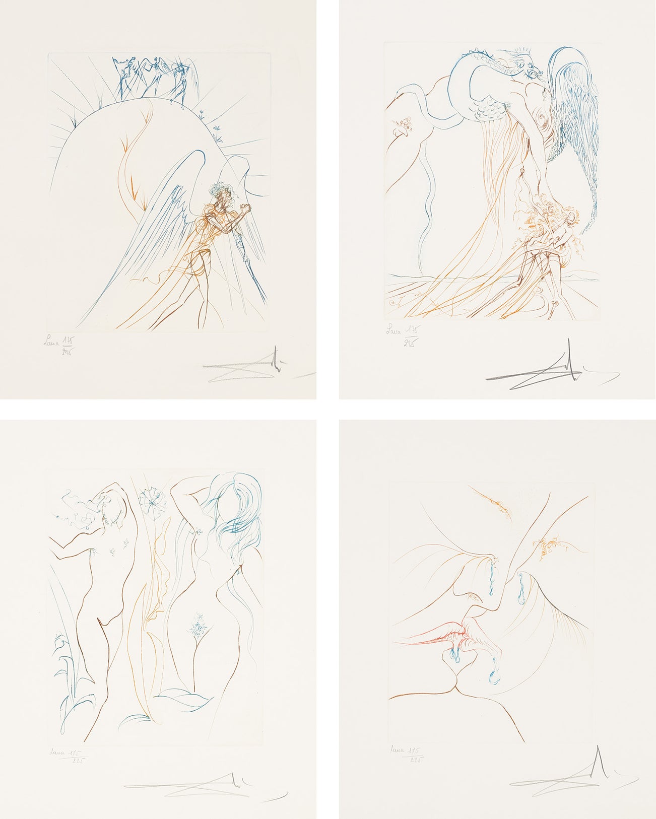 Spanish | B. 1904 D. 1989Salvador Dalí was perhaps the most broadly known member of the Surrealist movement of the early twentieth century. Heavily influenced by Sigmund Freud, the avant-garde style explored consciousness and dream-like states through exaggerated landscapes and bizarre or grotesque imagery. Using the means of painting, sculpture, printmaking, film and literature, Dalí explored these ideas with a meticulous hand and inventive wit.